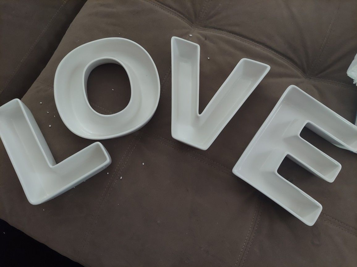 Super cute love candy dish set. Used for bridal shower and engagement parties. So cute.