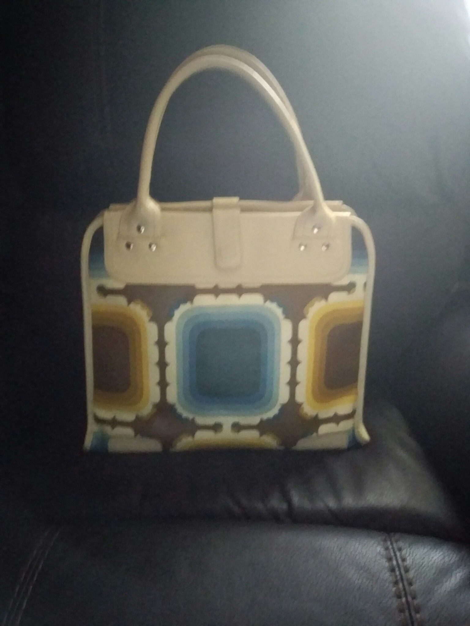 Very nice Lg Orla Kiely tote bag. Multiple colors. Cream, brown,blue, yellow.