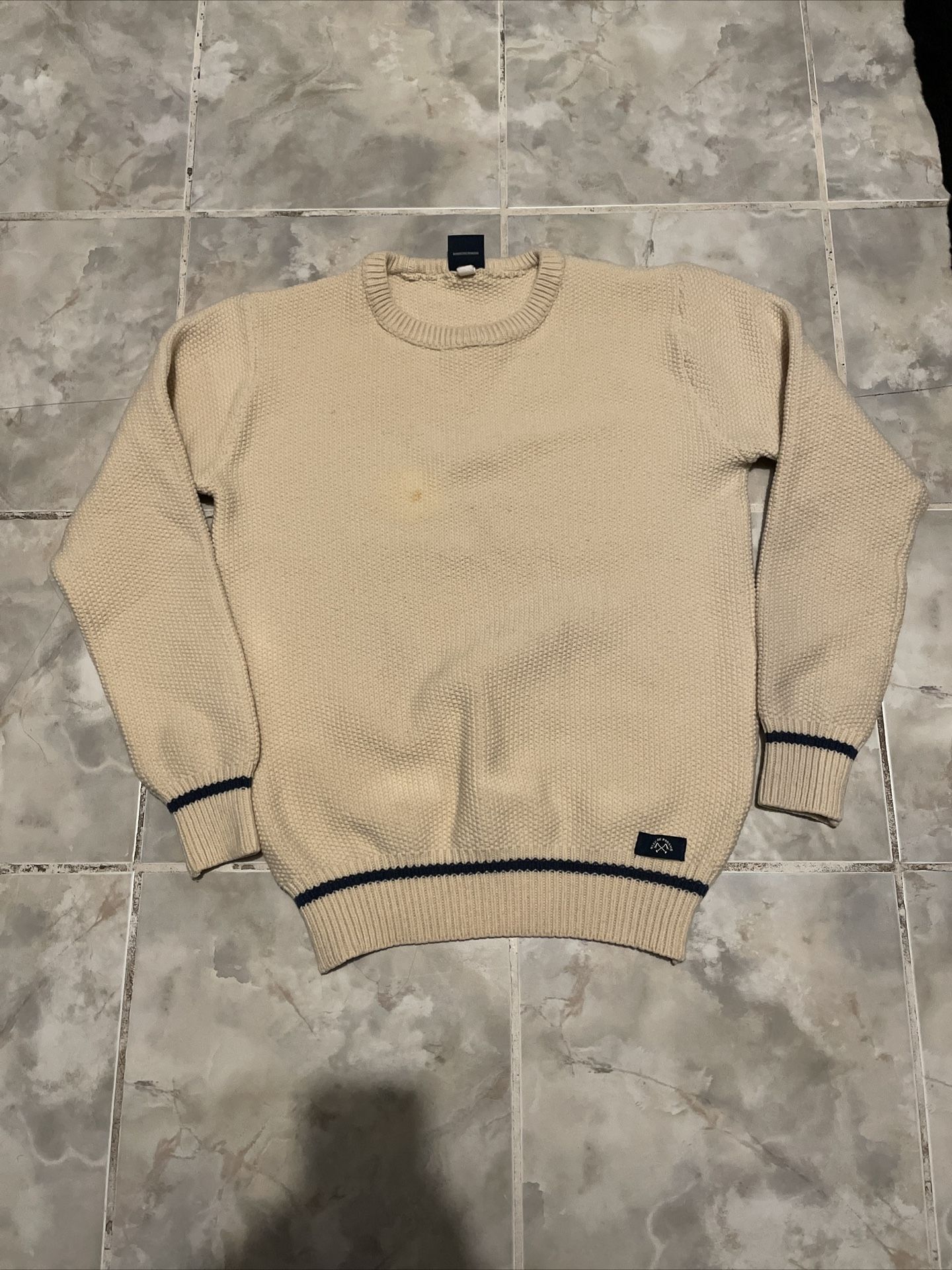 The sweater has been washed ready to wear it does have a light blemish that will probably come off after another wash or stain remover easily nothing crazy the iPhone picks it up more than you can see refer to the images for purchase thank you