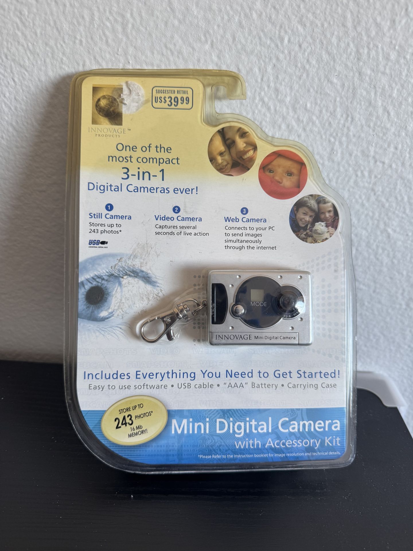 It’s a keychain like mini camera that you can click pictures and then see them by connecting on your laptop.