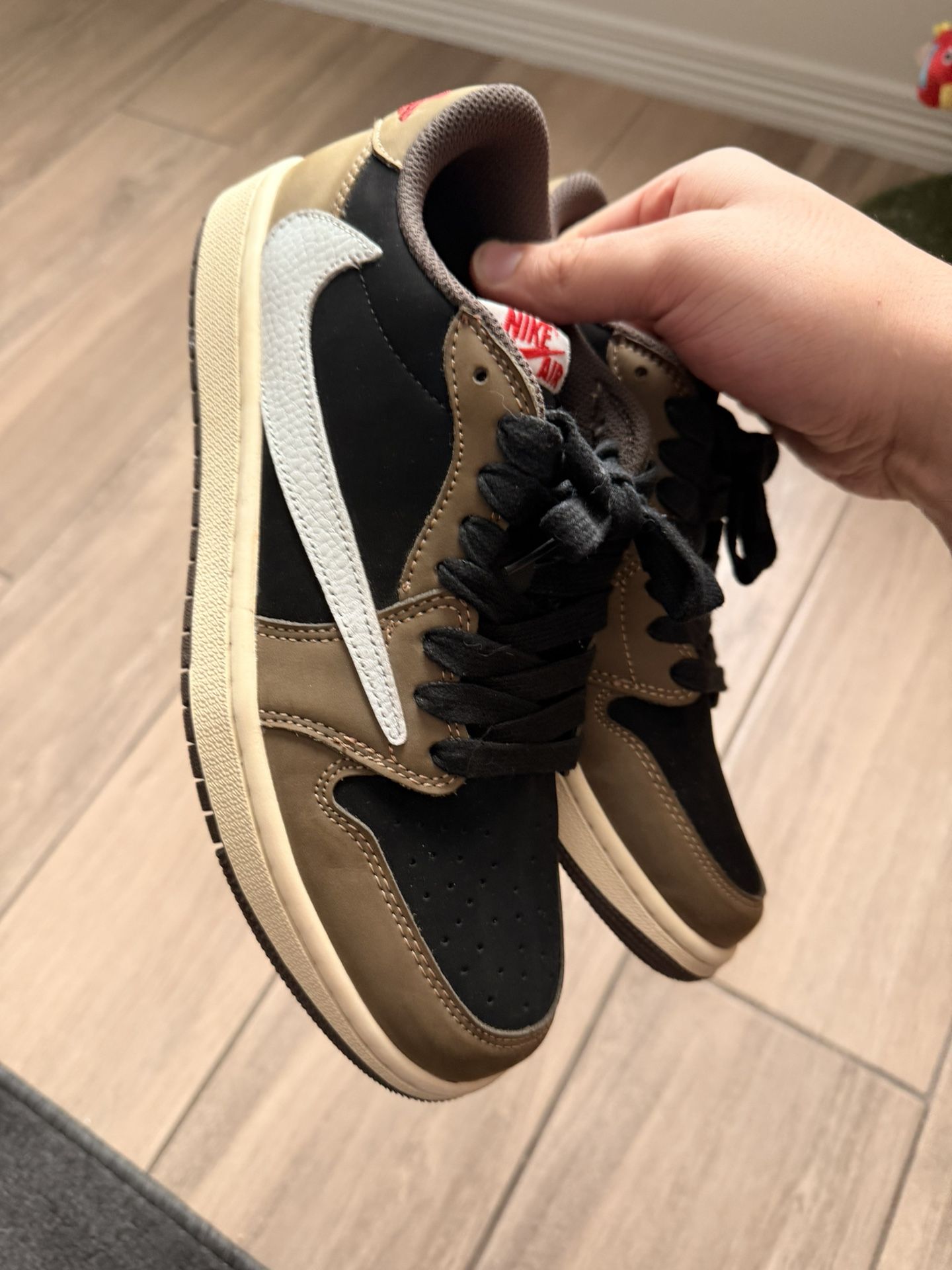 Travis scott mocha 1 8.5Mens. No idea if legit , got them in a trade & they are not my size . Im size 11/11.5-12 . Asking for $350 cash OBO. Not really up for trades alone it would have to be cash + trade (I’m not picky on shoes ) but shoes must be my size Preferably just cash