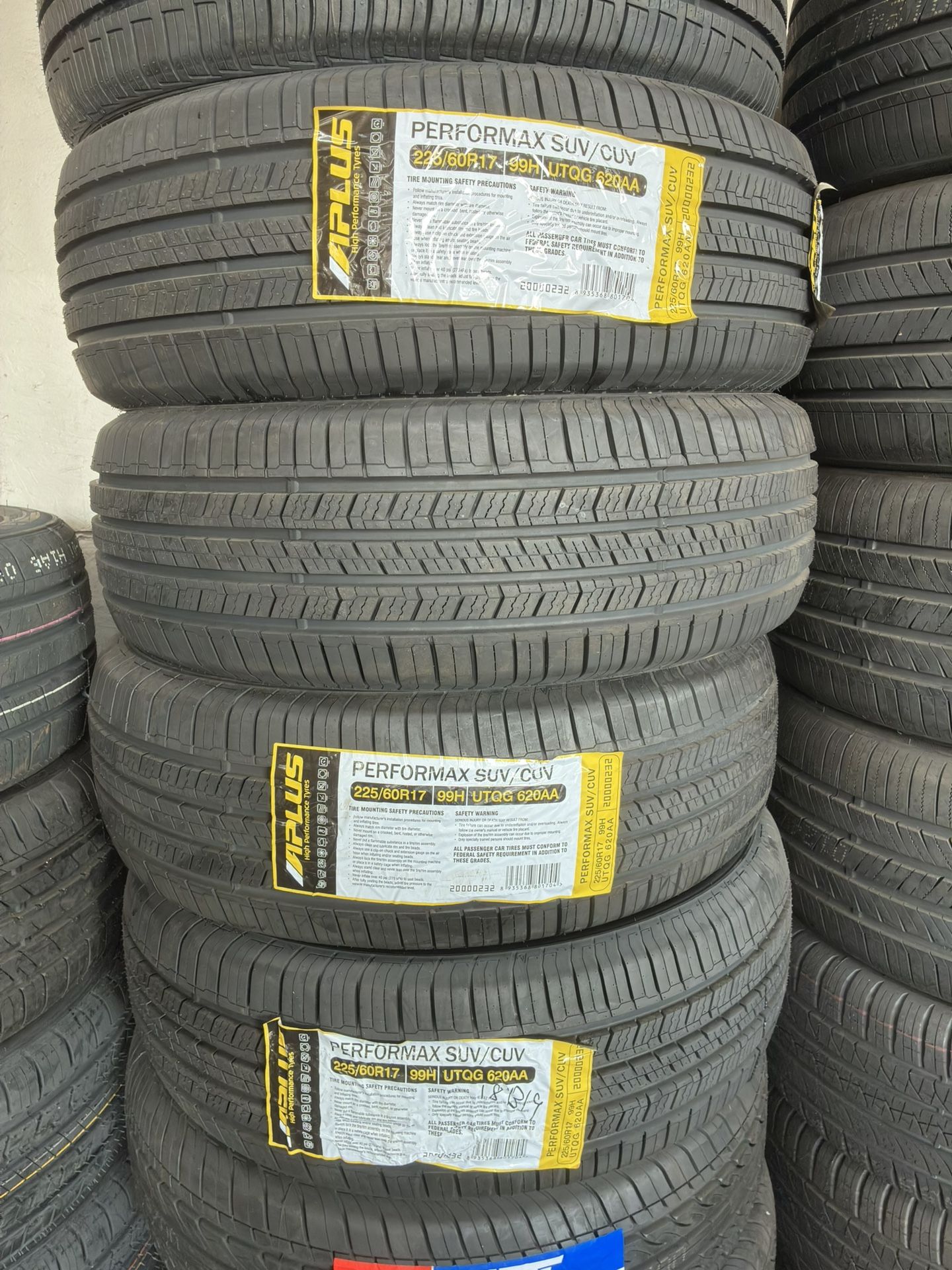225/60/R17 all season tires Aplus pro racing Brand new Set of 4 HABLAMOS ESPAÑOL Price Includes Set Of (4) Brand New Tires Mounting & Balancing Free Flat Repair Free Rotations Tire Disposal 🕘 Open Mon–Sat | 9:00 AM – 6:00 PM ⚡ Same-day install — No appointment needed 📦 Other sizes available Tire & Wheel Center 2301 El Camino Ave Sacramento Ca 95821 🔧 Additional services: • Wheel alignments • Shocks & struts • Suspension work • Brake jobs