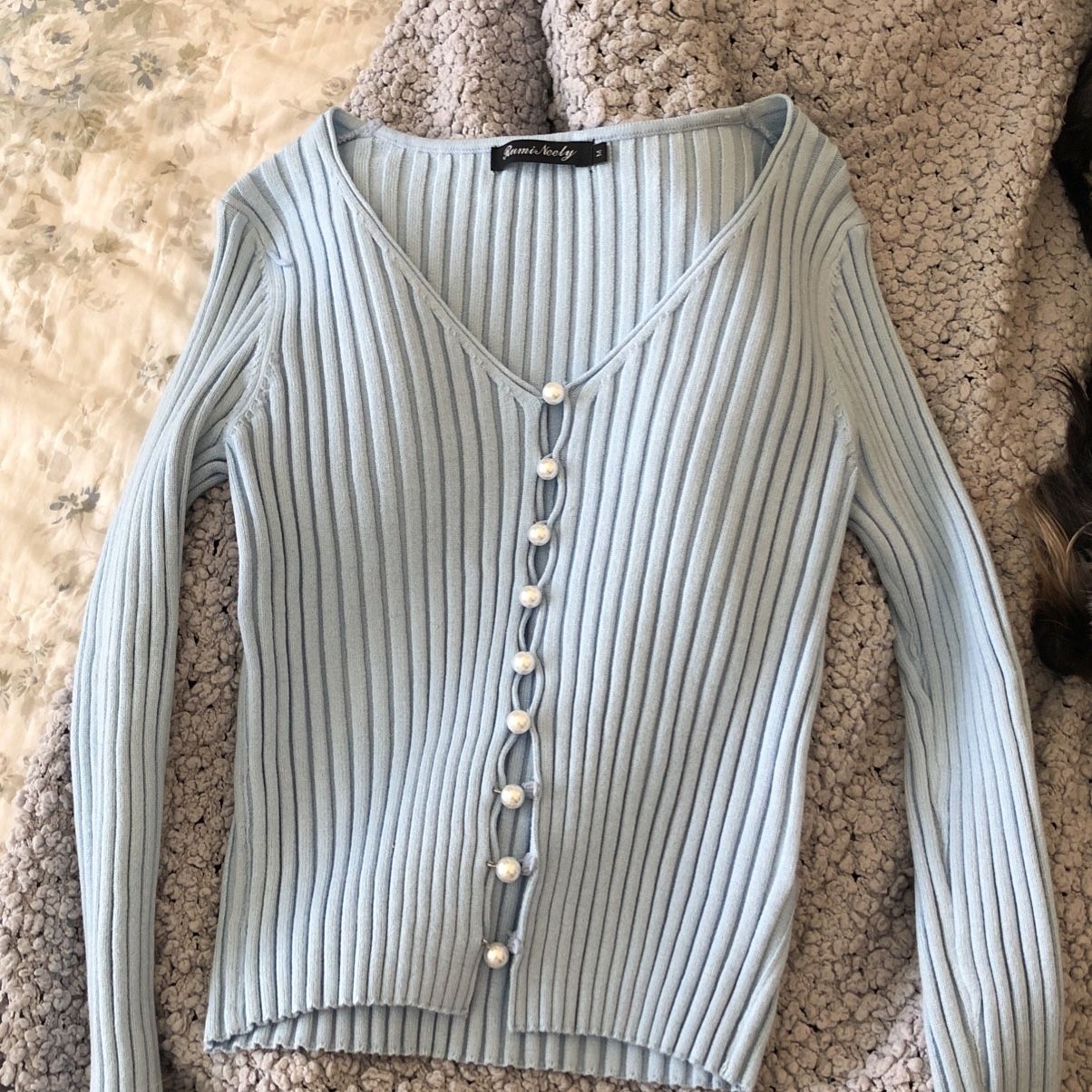 Brand new sweater baby blue top with pearl buttons