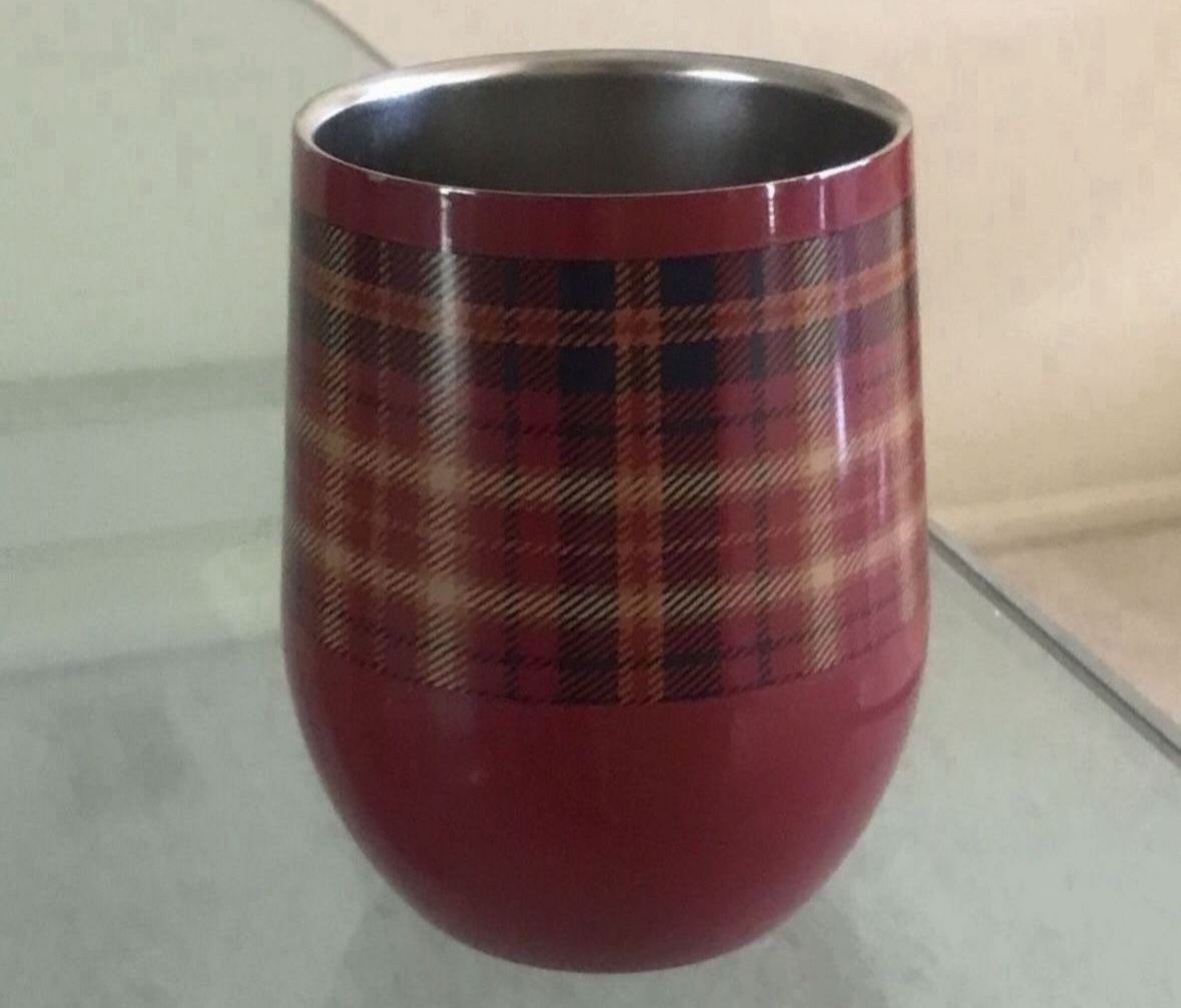 Red Plaid Stainless Steel Tumbler Cup Double Insulated Like Hydro Flask Coffee Tea Drink Beverage Metal Stemless Wine Glass Brand New
