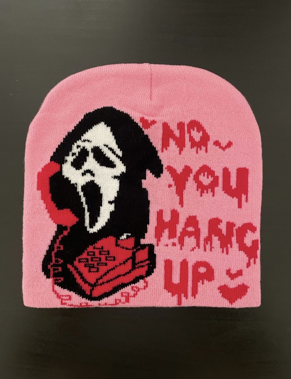 Ghost Face Scream Beanie No You Hang Up NEW Pink Black Horror Halloween