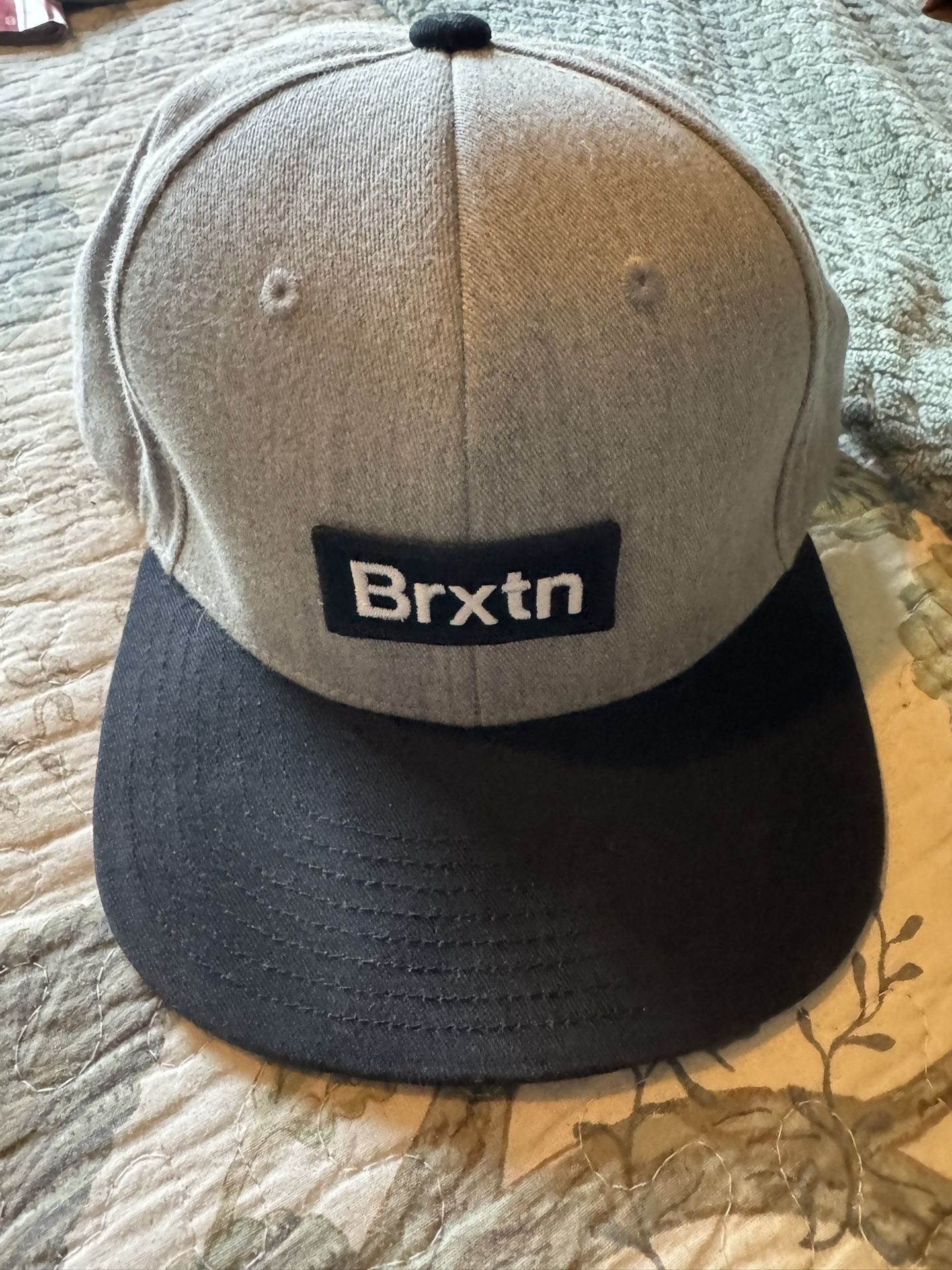 This is a stylish and classic Brixton Gate III MP snapback cap featuring a heather grey crown and a contrasting black brim. The hat has the iconic "Brxtn" patch on the front and an adjustable snap closure at the back for a perfect fit. It is made from a durable acrylic-wool blend material and is in excellent, well-maintained condition. This specific colorway may be discontinued, making it a unique find. Perfect for skate, street, or casual