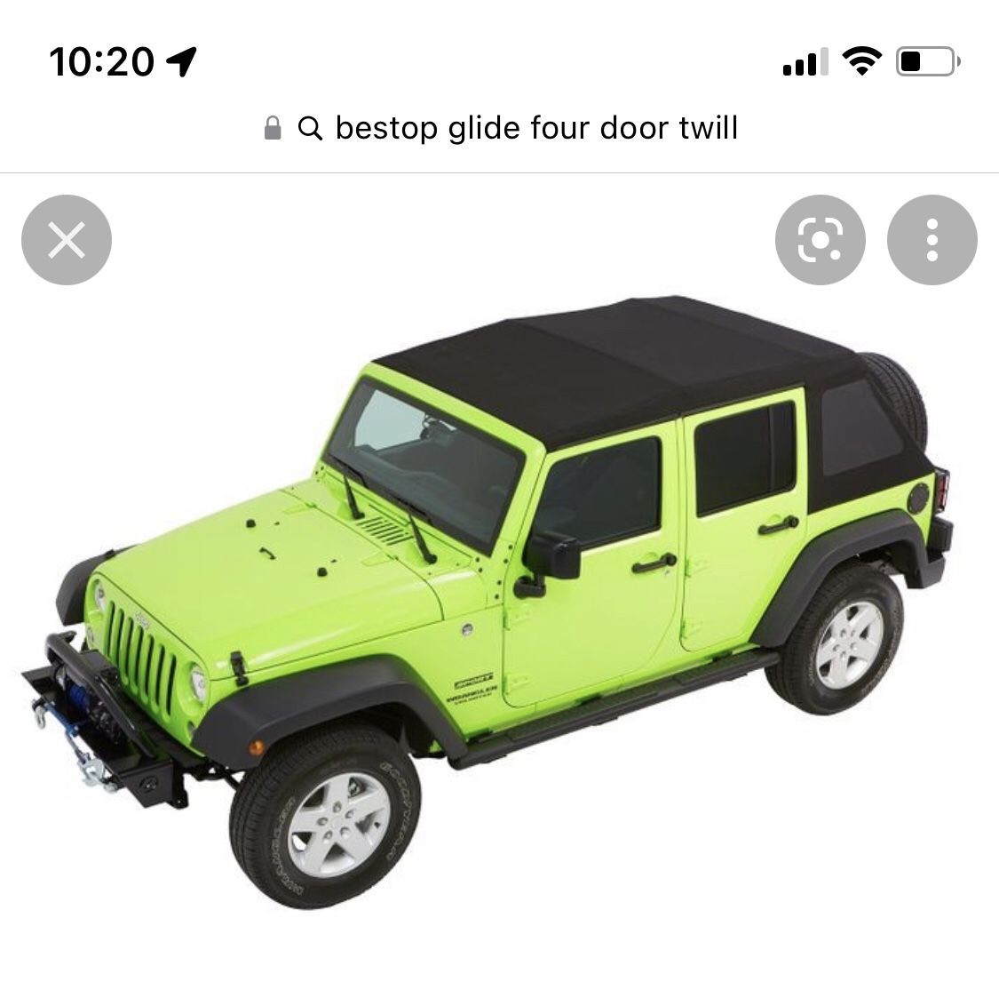 Treetop Nk Glide Soft Top For 2007-2018 4 Door Wrangler. Black Twill
