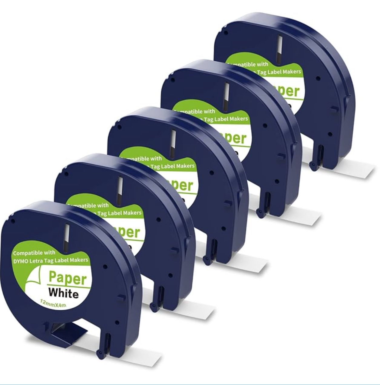 5 Pack Paper Label Refills Replacement for Dymo Letratag Refills 91200/91330 White Paper Tape 1/2 X 13, Compatible with Dymo Label Maker Refills, Work