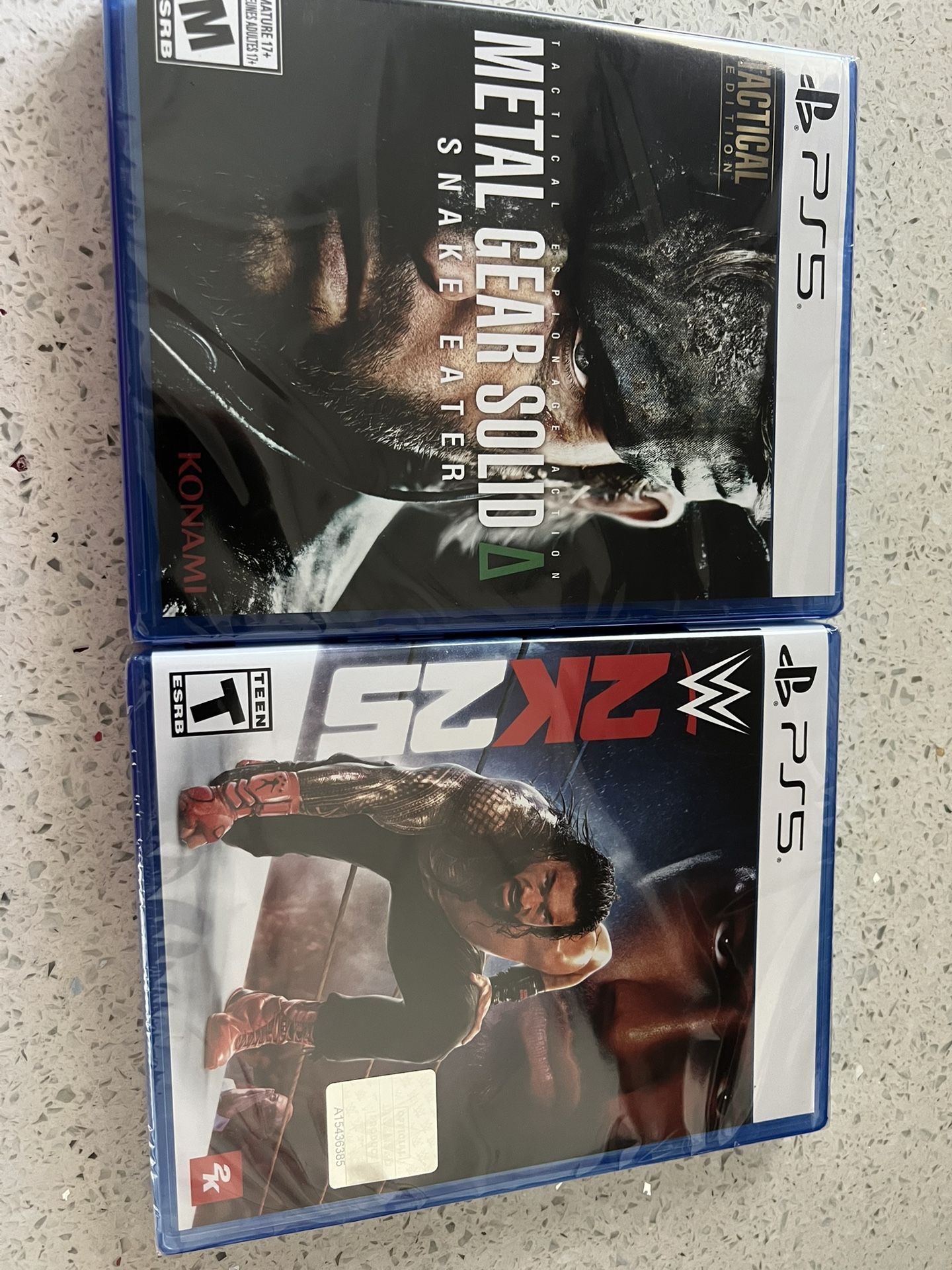 PS5 metal gear solid snake eater Wwe 2k25 Both games a new and still wrapped. MGS: $40 WWE: $25