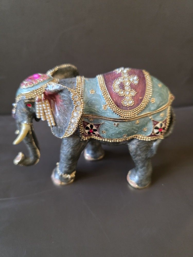 Bejeweled KAT Kathmandu Elephant Trinket Box 4.5"