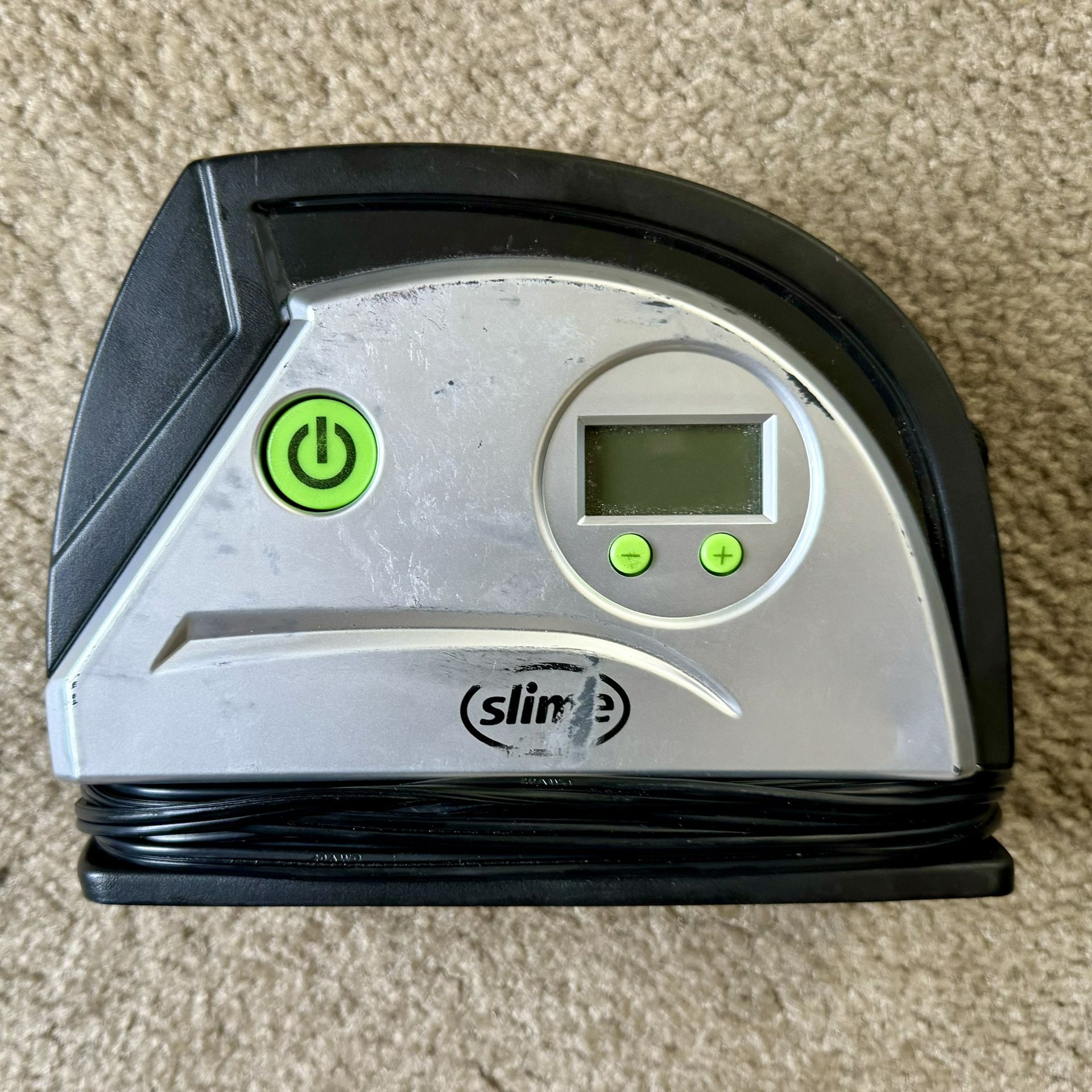 Slime 40051 Tire Inflator, Portable Car Air Compressor, Inflate Right automatic shut off, with Digital 99 psi Display, Long Hose and LED Light, 12V, 6 min inflation. Plugs into cigarette lighter. Works perfectly fine. I upgraded my compressor to run from the battery so no longer have use.