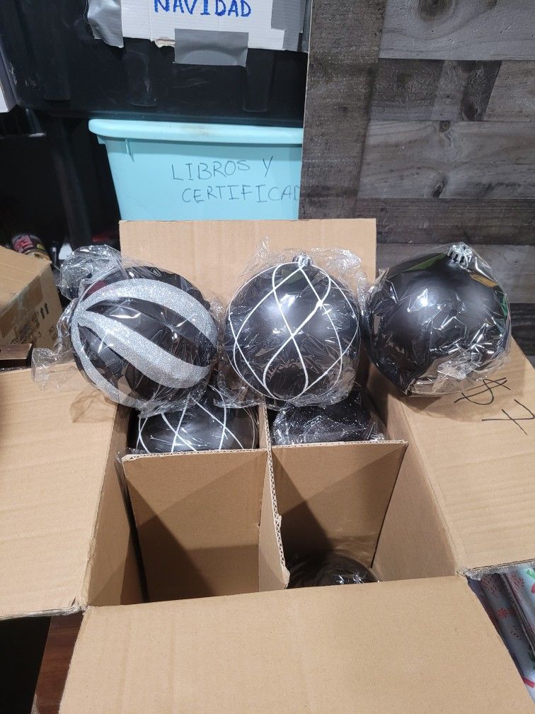 8 large Christmas ornaments Black and silver $7 for all