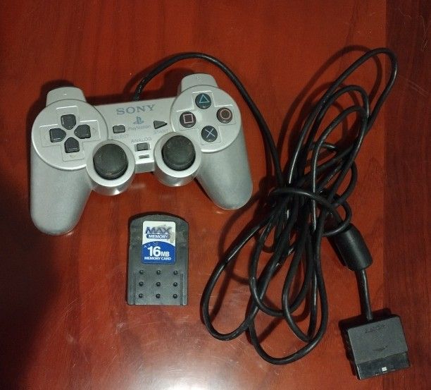 PS2 Silver Dual shock 2 Controller And 16Max Memory Card 16mb Pre-owned in good conditions 20$ picked up