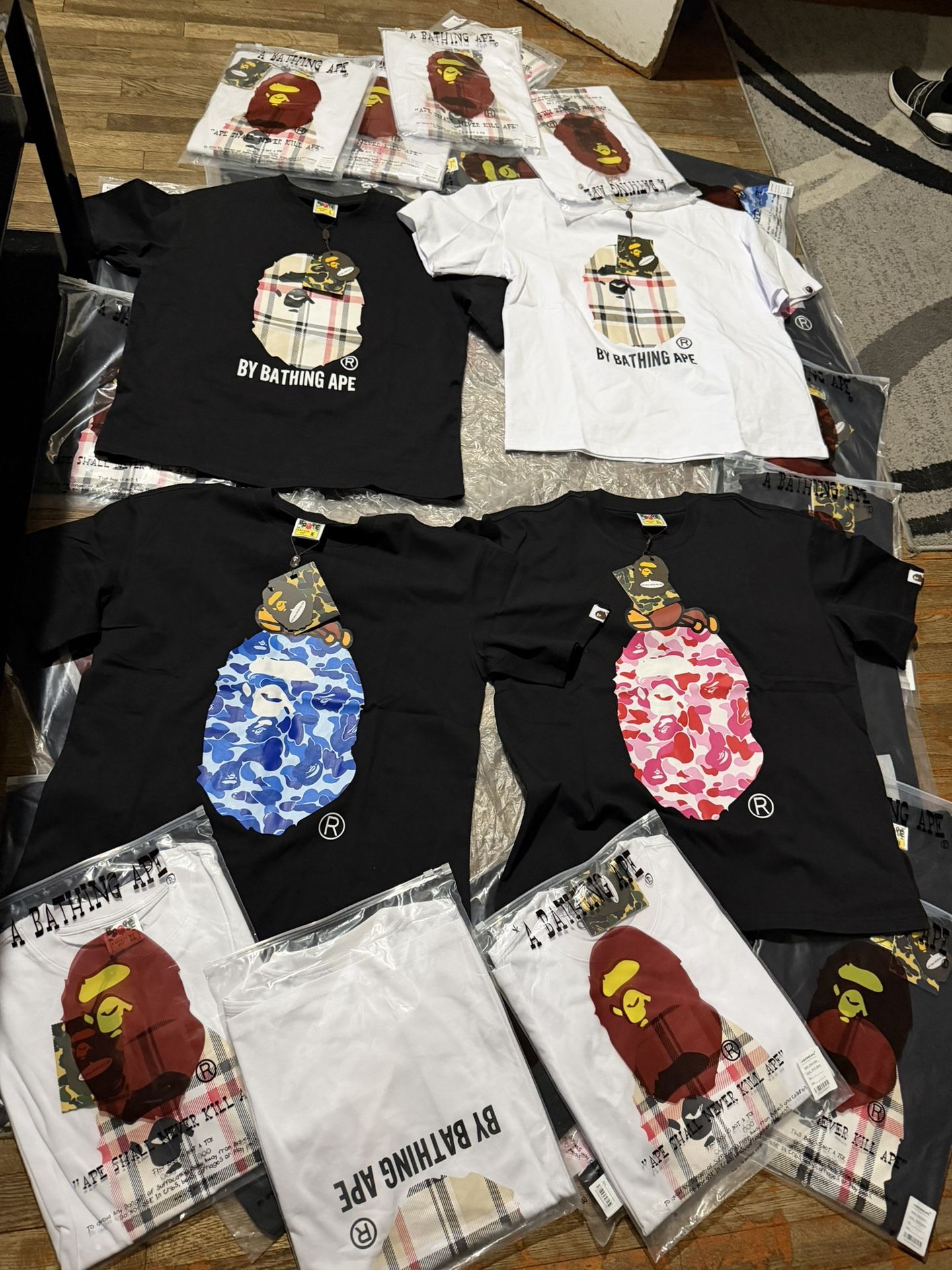 Burrberyy black and white Bape tees pink and blue Sizes : M,L,XL