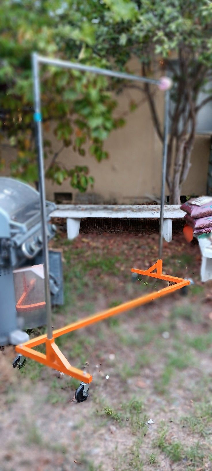 Great condition. Can adjust height. Has locking casters. Comes apart for easy moving (breaks down to 4 pieces). Perfect for swapmeets, yard sales, or just to hang your items in a garage. Located near Lakewood Mall in Lakewood, CA.