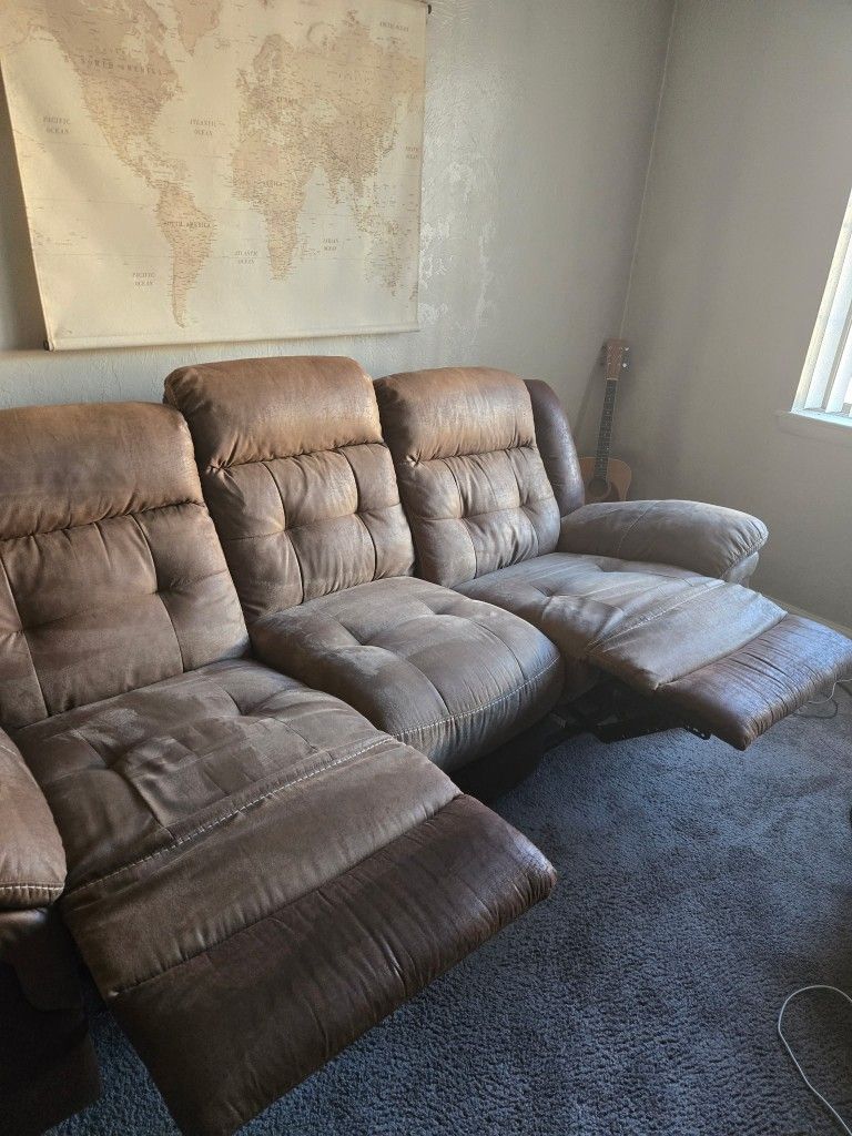 Brown Microfiber Recliner Couch