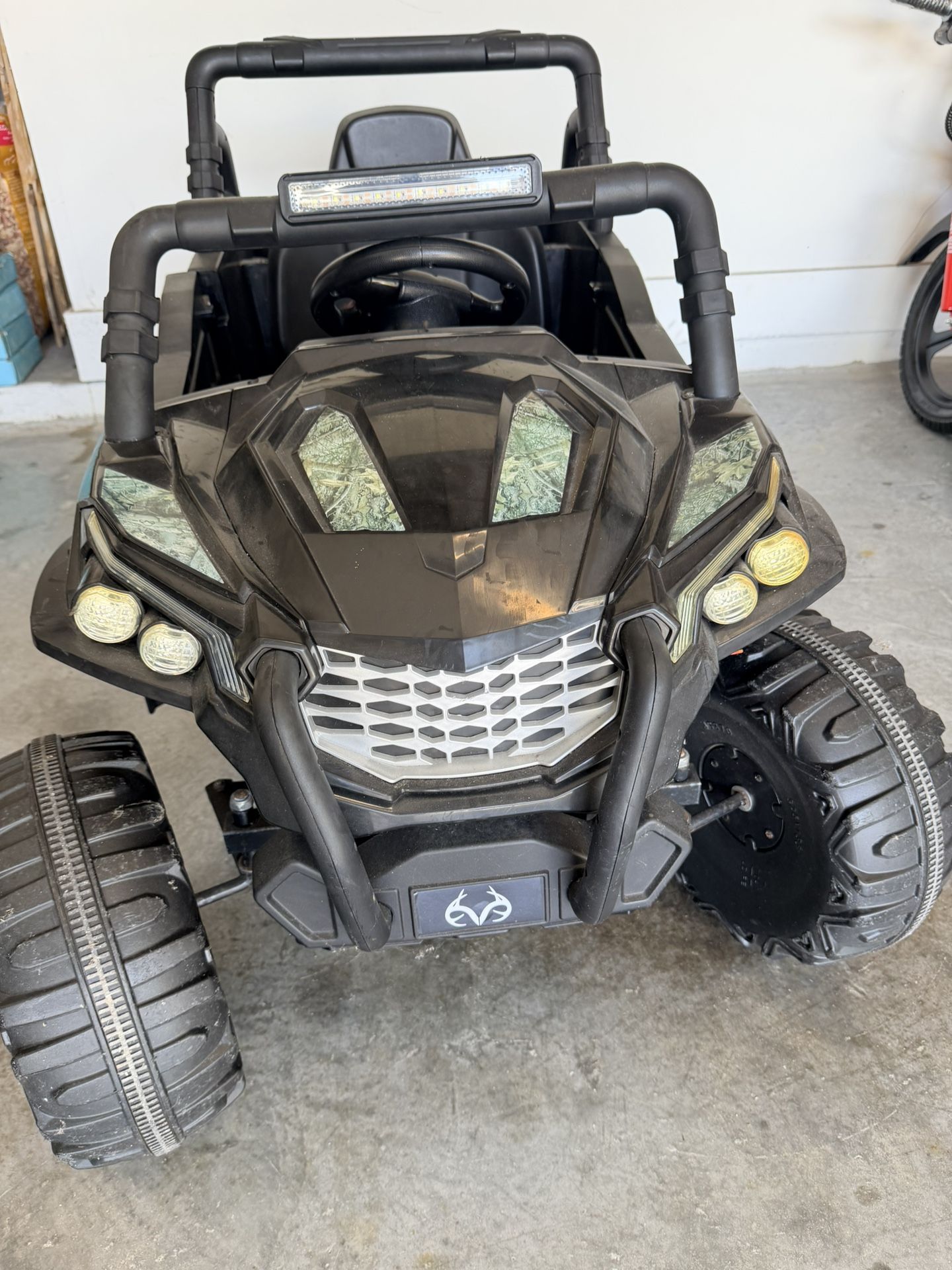 12V UTV Ride-On Electric Toy Truck with Realistic Lights & Sounds Power: Rechargeable battery system (models generally range from 12 to 24 volts). Capacity: Typically designed as a two-seater for kids aged 3 and up. Good condition with charger included.