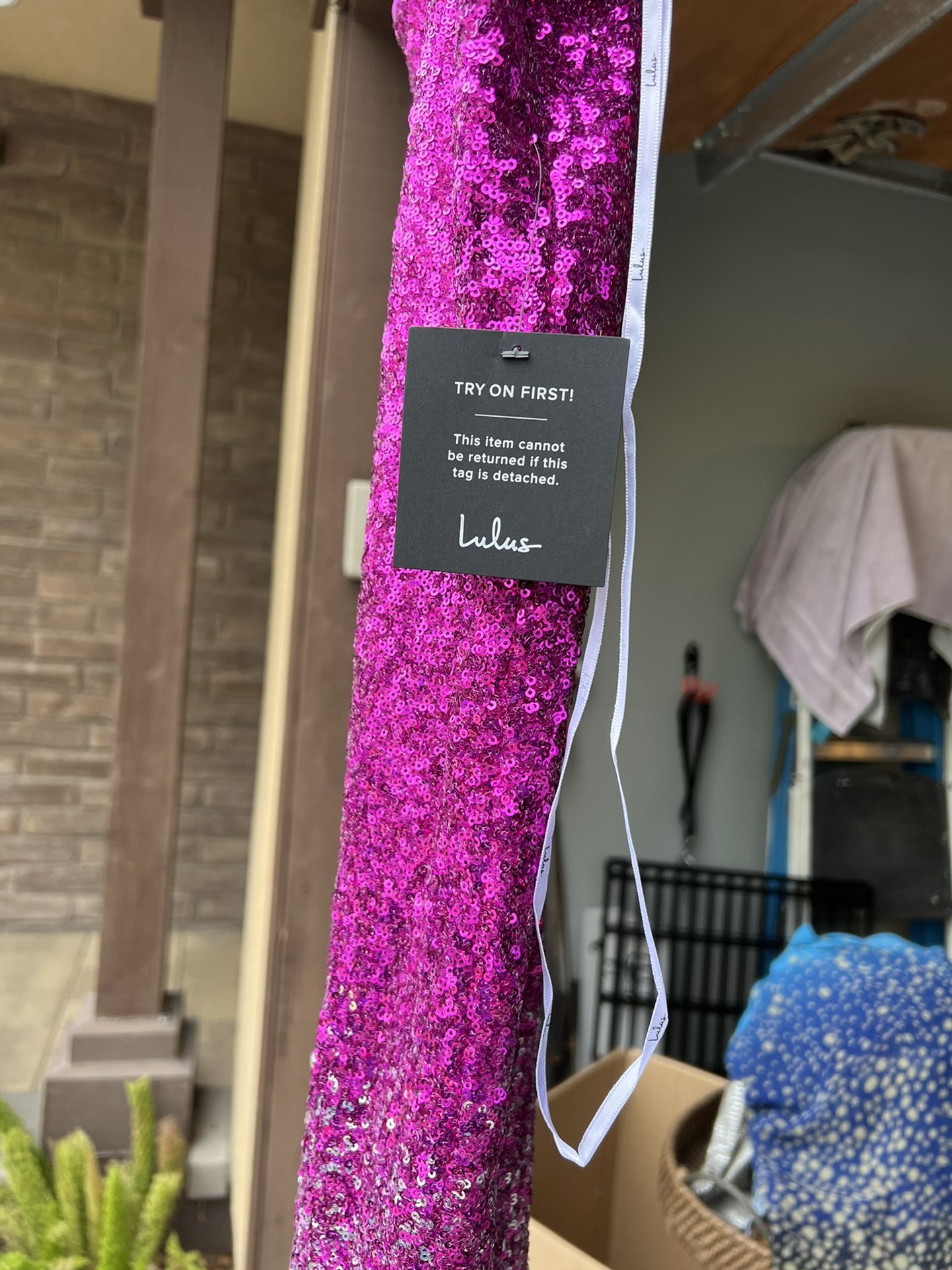 Brand new never worn Prom or Evening gown. Super cute side cut outs Pink and silver. Dress is by LuLu Size L Runs on the smaller size