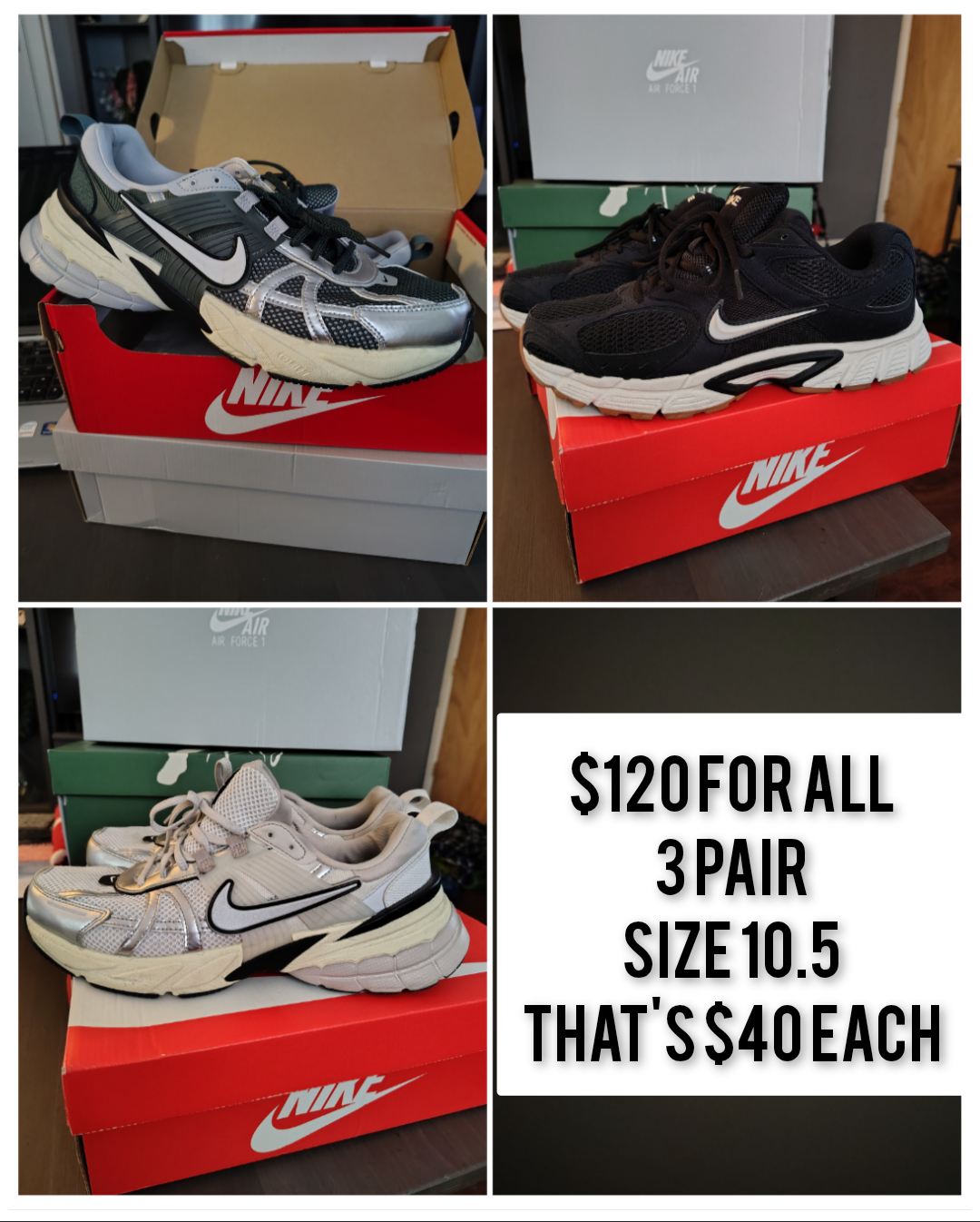 TODAY ONLY! $120 FOR ALL 3, SIZE 10.5