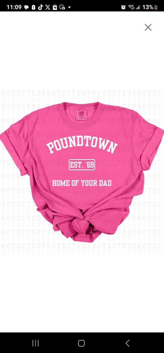 Viral poundtown tee. Available in multiple shirt colors and sizes. Also available in sweatshirts ($30) and hoodies ($40). Located in Beaverton