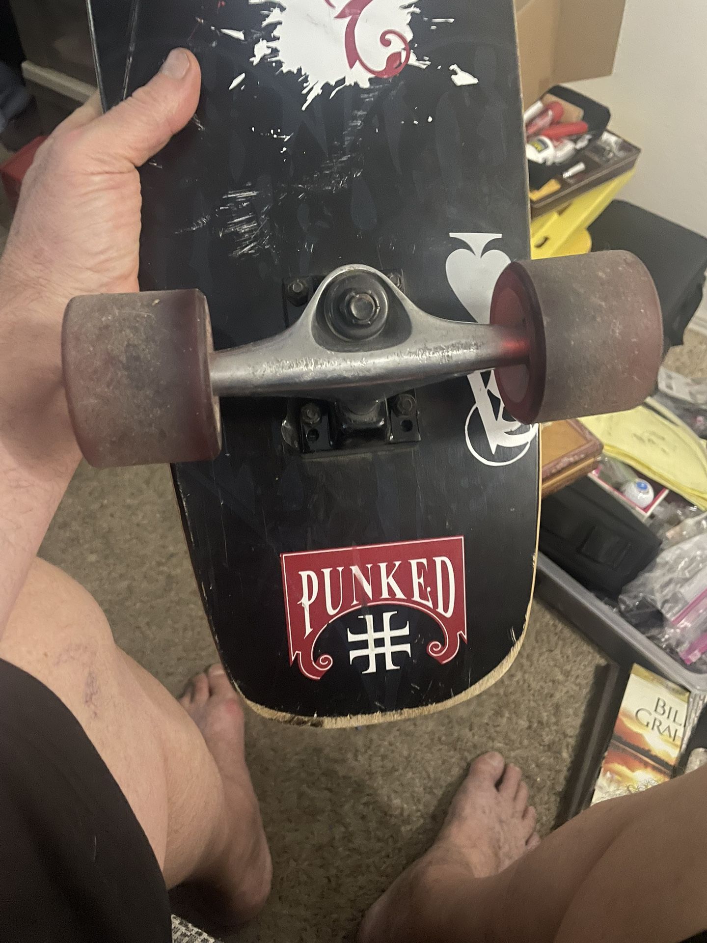 PUNKED Skateboard Spade Black White Red w Red Speed Cruiser Wheels Condition/ used/ some surface cracks but nothing compromising board structure on either boards. 🔥Pre-owned🔥 Signs of use are present. Wear is present, scratches on the front , some of the paint is missing, there are some chips on the board. Please review pictures before you buy. What you see is what you will receive.🔥 Size is 26.5" x 7.5" Kryptonics Skateboards Longboard California . Condition is Used