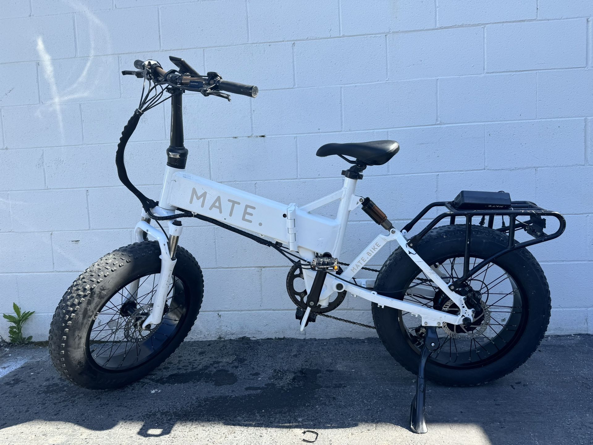 White Mate 48 V Electric Bike This bike will easily fold to fit in the trunk of your car. Runs Perfectly.