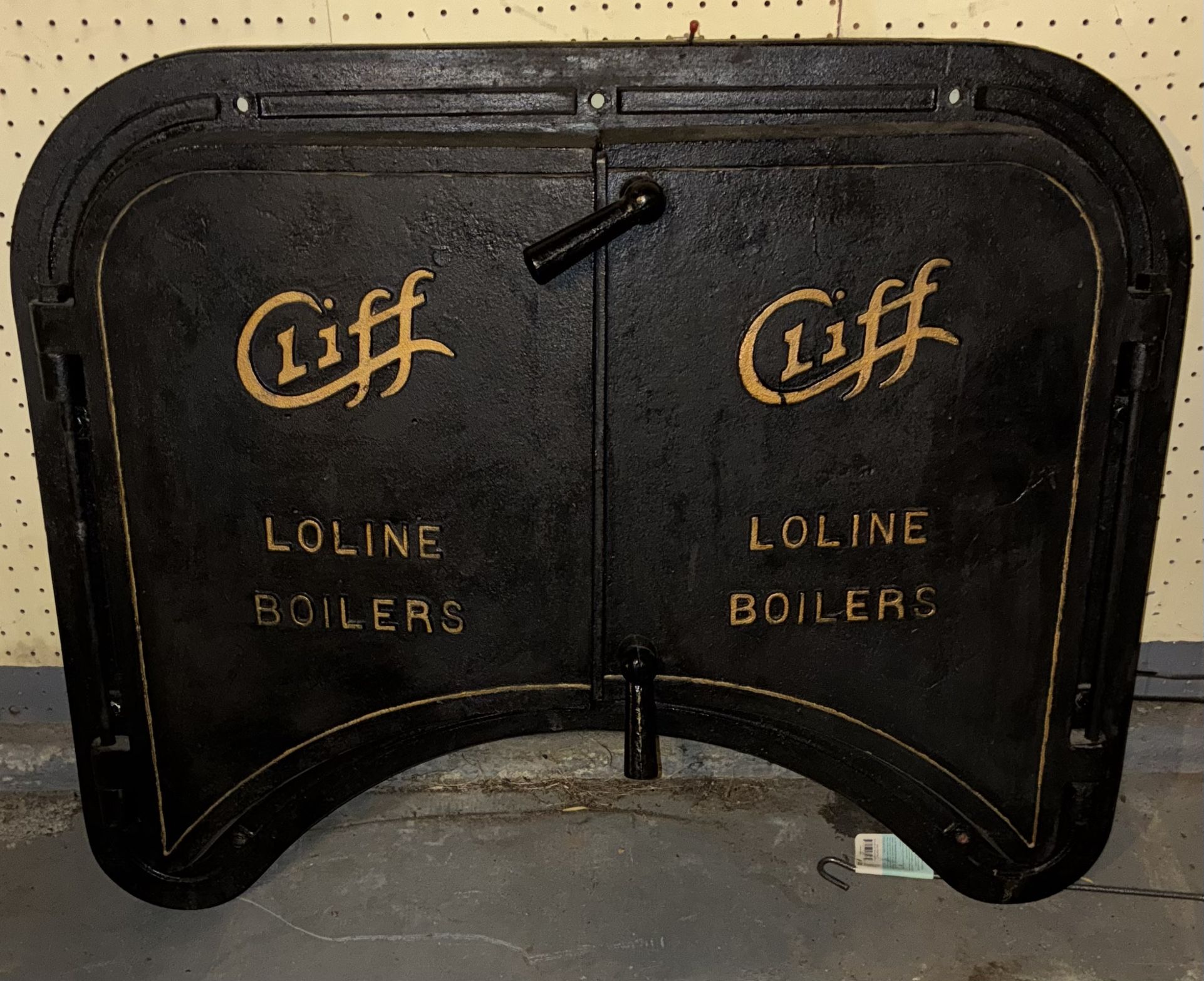 Antique Cliff Double-Door Boiler Doors . This came off a train!!! Very heavy cast iron. Unique railroad decorative item for man cave, restaurant, antique store, vintage motorcycle shop, or ?????? Measures approximately 31” x 39”
