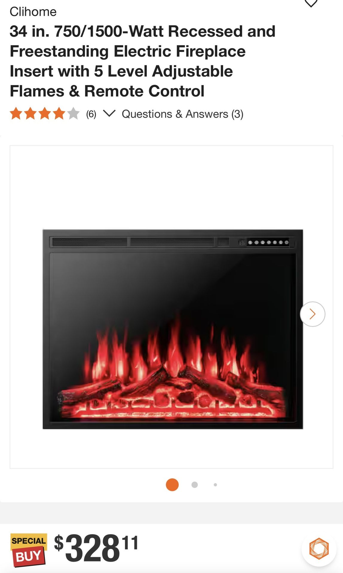 34 in. 750/1500-Watt Recessed and Freestanding Electric Fireplace Insert with 5 Level Adjustable Flames & Remote Control