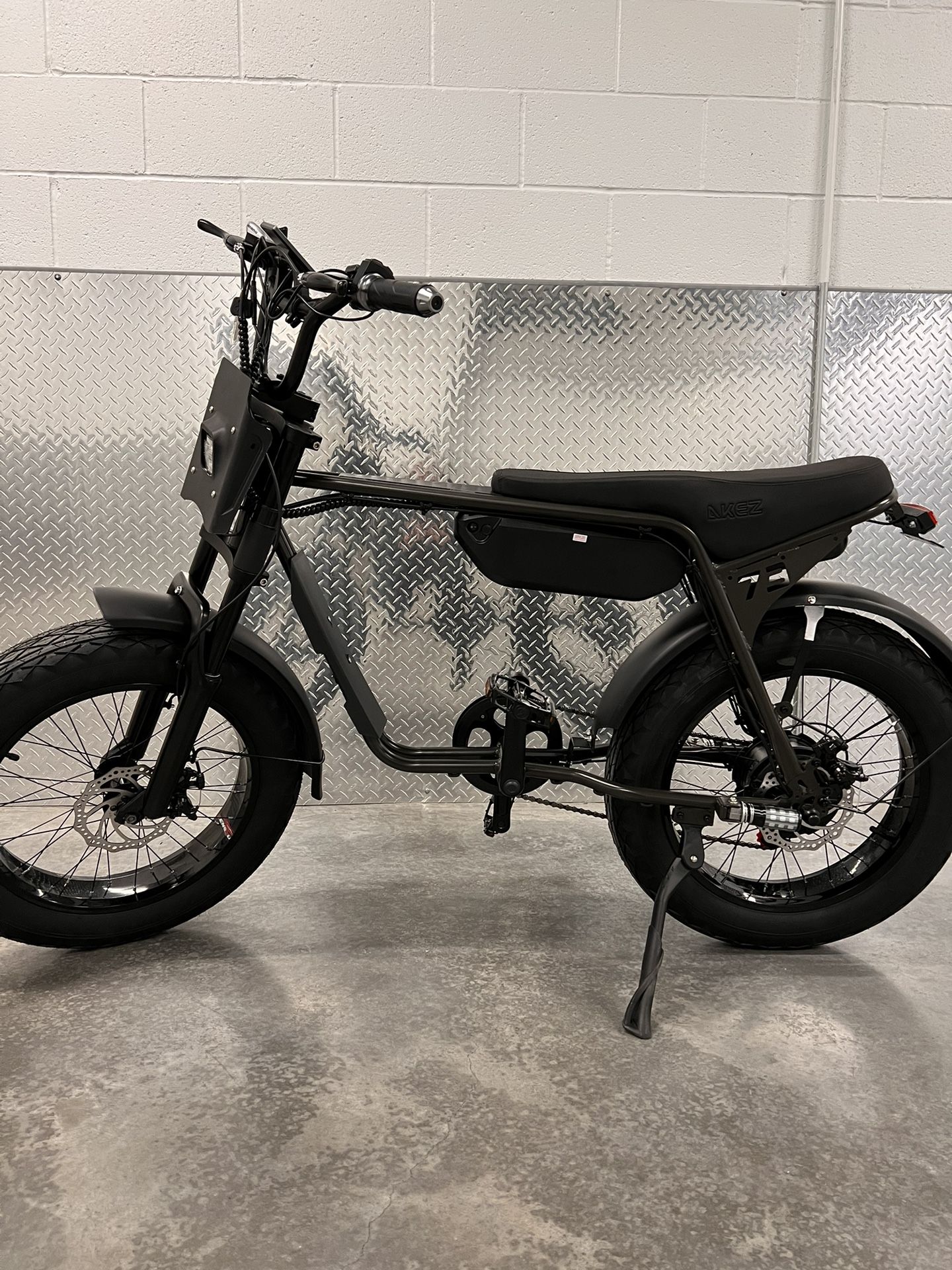 Price includes: Tax, Free Delivery, Full Ebike Build with brake and derailleur tuning, 1 year warranty, Free test ride before purchase 73 Miamii Style Electric Ebike 750 Watt Motor 13ah Battery 28mph top speed Rear Pegs 24 inch long seat 31 inches high from ground to top of seat height (4’10-6’0 Rider Height) Bike is very light at 65lbs with battery Removable Battery Disc Brakes Twist Grip Throttle 5 Speed Pedal assist 7 Speed Derailleur Shimano Camo or Dark Gray (Colors available)