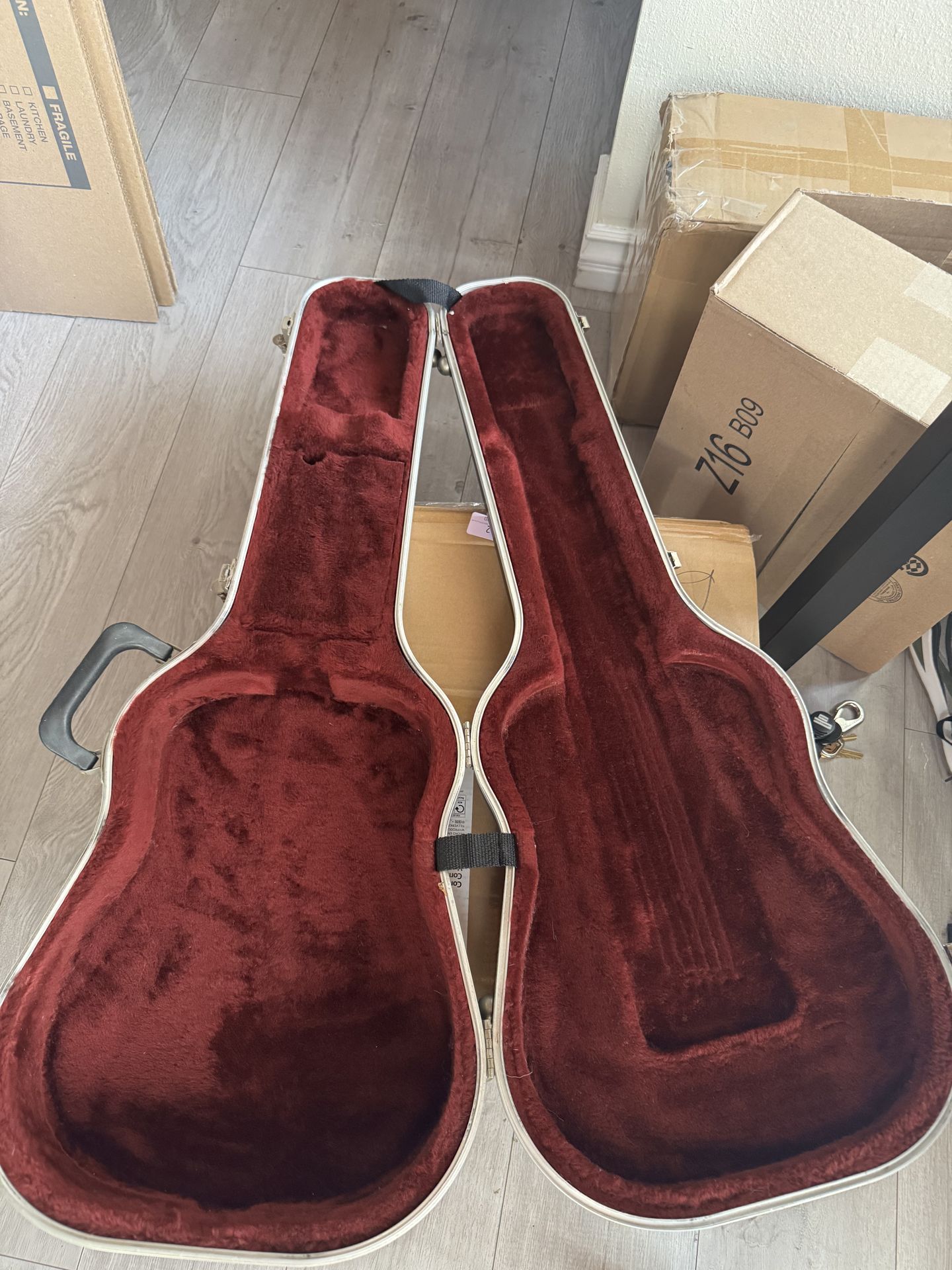 The case (measures approx. 34 inches in length INSIDE ) is for the Baby Taylor guitar or other smaller 3/4 Martin guitars. It has some usual scuffs and slight rust on the working latches. Save some significant cash by going used to safe guard your guitar.