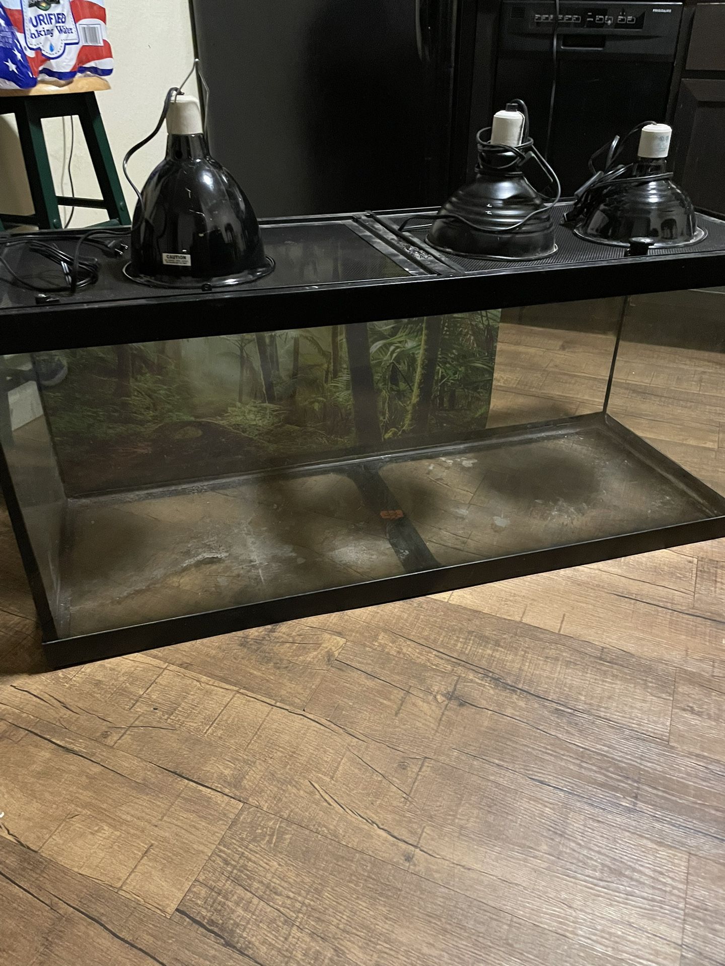 Was used for a snake before I got it then I used it for lizards so Iβm not sure if it holds water it looks good too comes with screen lids that locks and heat lamps asking only $100 for it go to pet smart and Petco then you will see that this is a good deal no I will not take $40 ππ½