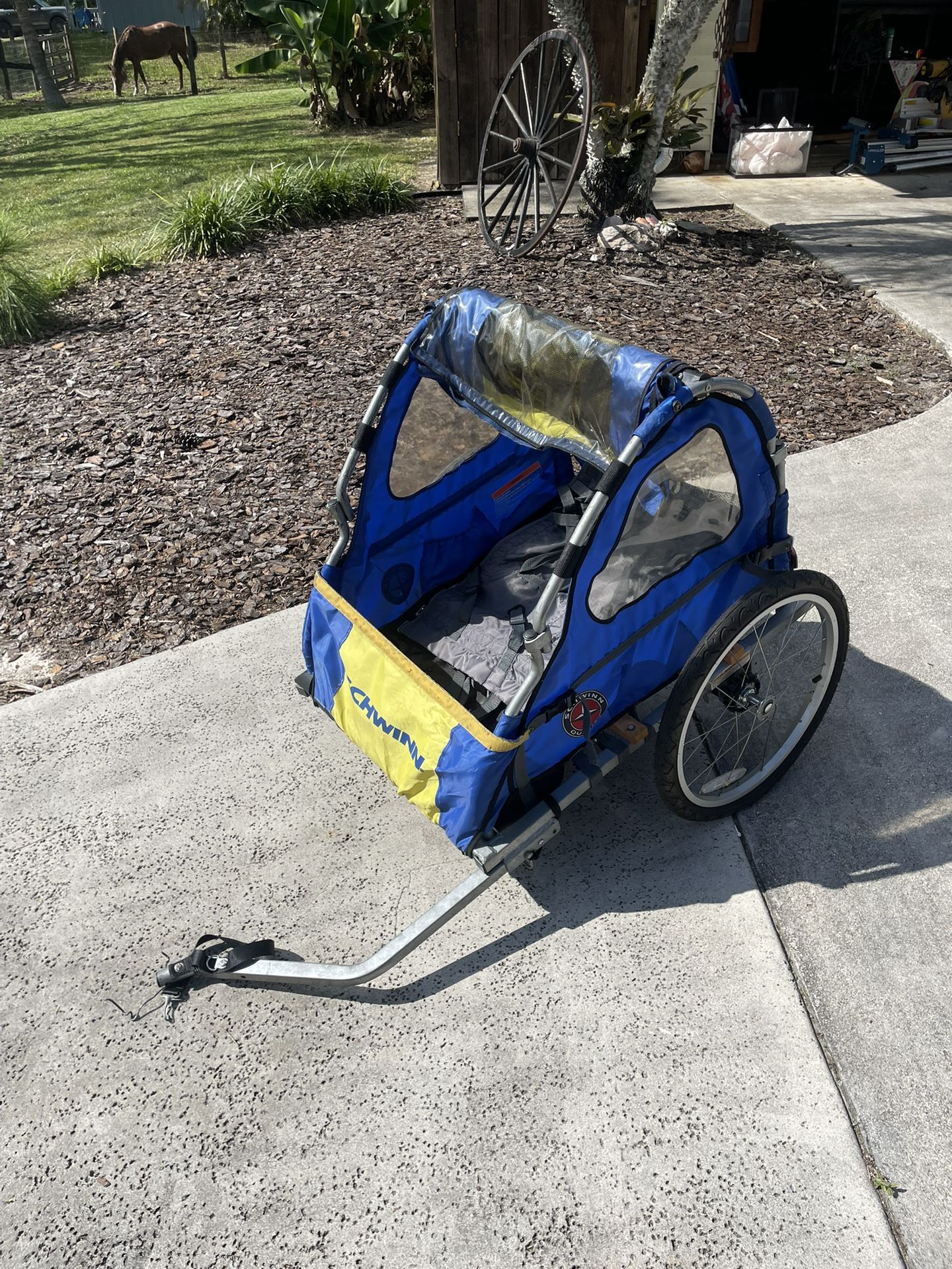 Schwinn Bicycle Trailer It has been shed kept and in overall good condition. You will need the connector for the bike (I just used wire) This was used to haul my tree stands for hunting so light loads. I also added some brackets on the bottom .