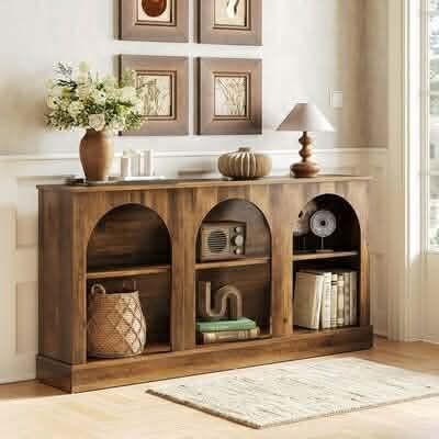 63 inches Modern Console Sofa Table with 3 Tiers Storage Wooden Rectangular Foyer Table for Entrance Hallway Living Room Rustic Brown