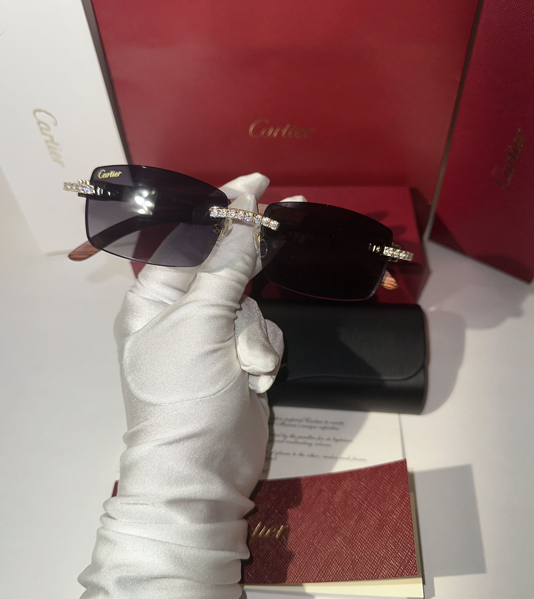 New Cartier decor wood sunglasses It will be delivered with certificate, original box, glasses case, and cleaning cloth. Before buying it you can ask anything about our glasses and we will gladly answer.