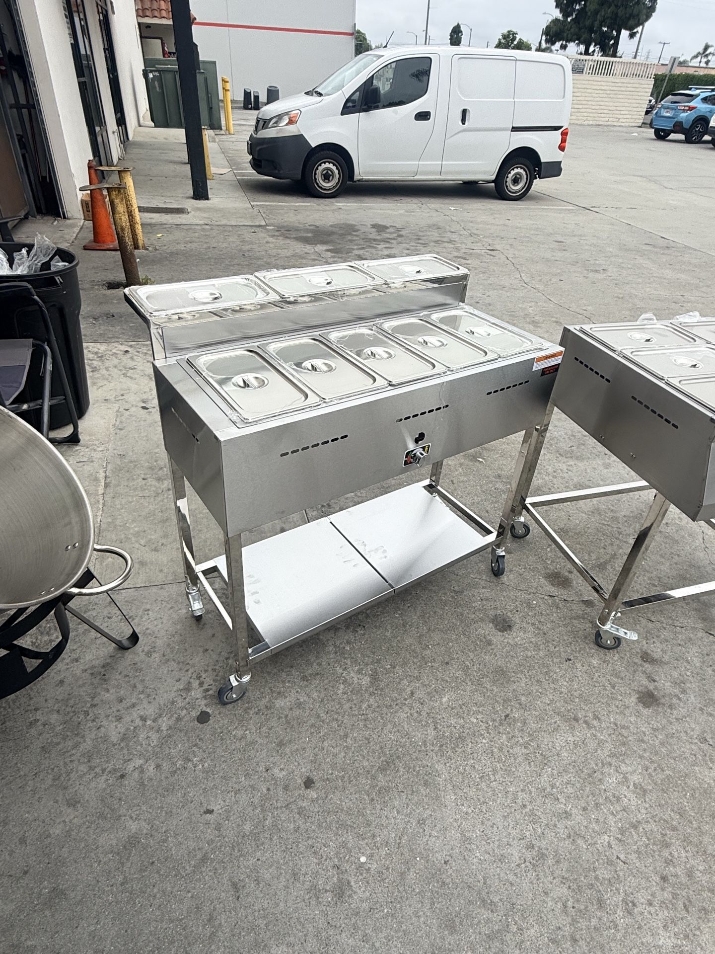 Steamer with salsa bar for propane/ Nuevo vaporeras para comida caliente con 3 salseras