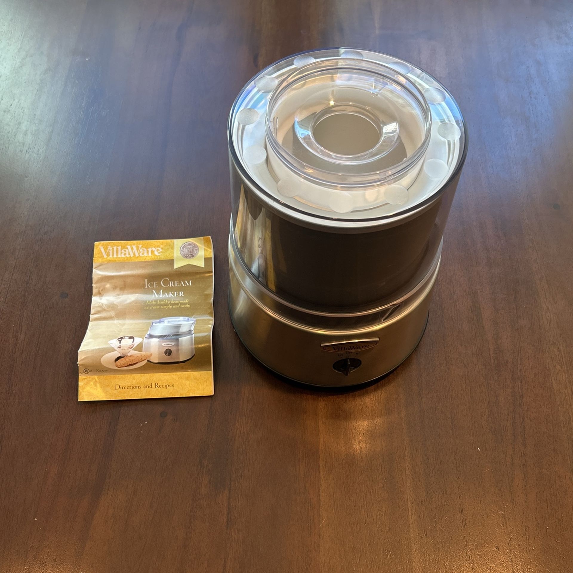 Make your own ice cream at home and keep all the ingredients within your family’s dietary restrictions. Non dairy, egg less, sugar less, ….. what ever you desire. Brand: Villaware Color: Silver Capacity: 1 Quarts Special Feature: Double Insulated Freezer Material: Stainless Steel Included Components Recipe Book, Instruction, Ice cream, Bowl Countertop ice cream maker that delivers results in 20-30 minutes 2-speed motor drive creates hard or soft ice cream 1-quart double-insulated freezer bowl with even-cooling release material Sturdy stainless-steel housing; non-skid feet; power cord storage 8-3/4 by 11-1/2 by 8-3/4 inches; 1-year warranty; recipe booklet included
