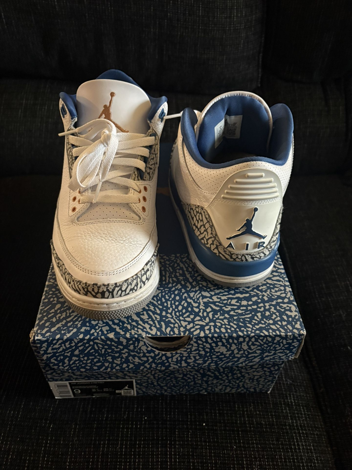 Air Jordan Retro 3 Wizards Size 9. Preowned but in really good condition. Worn a handful of times. 100% authentic got them when they released.