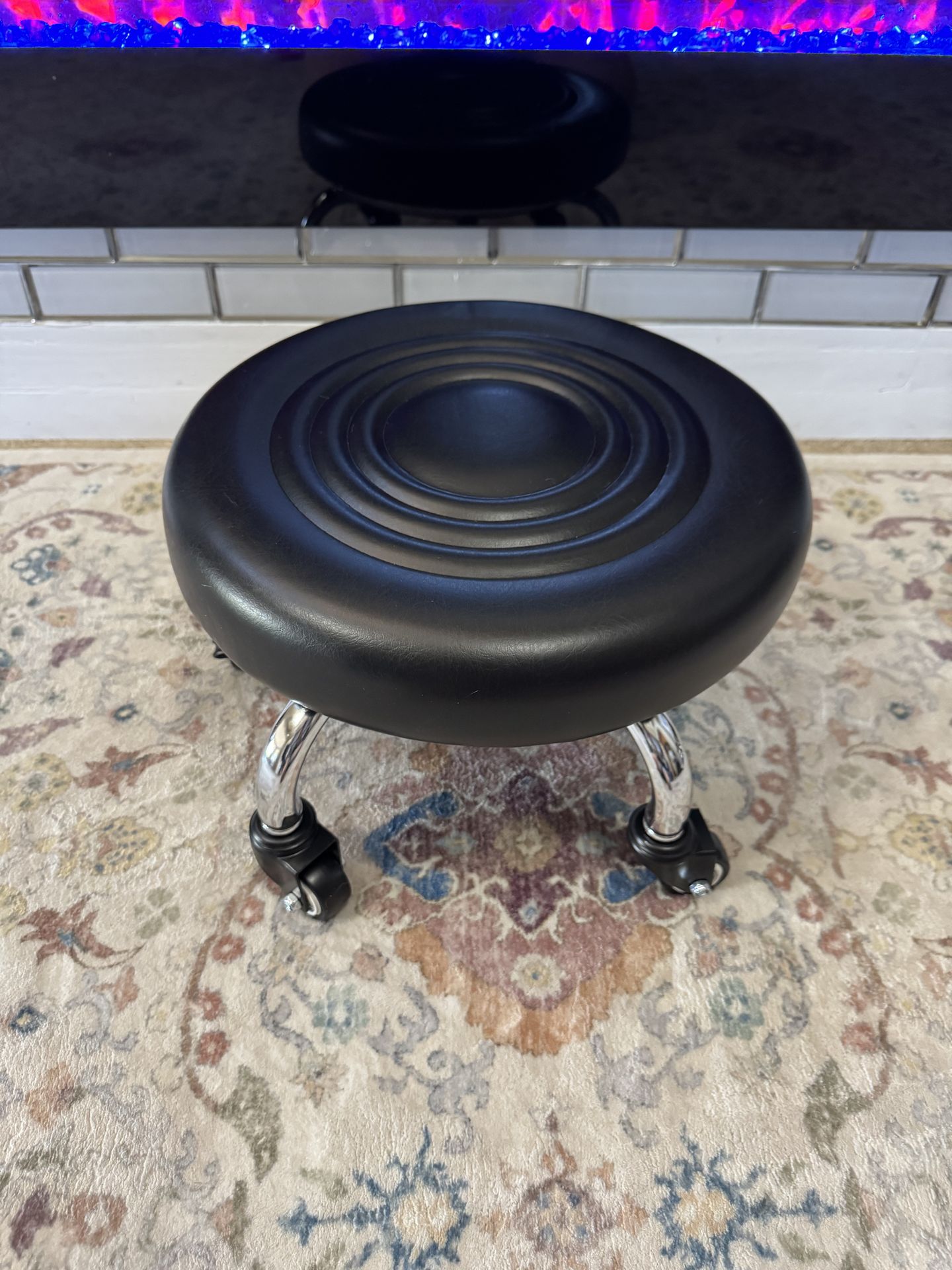 NEW**FLOLXNB Low Rolling Stool, Low Stool with Wheels, PU Leather Low Roller Seat Chair