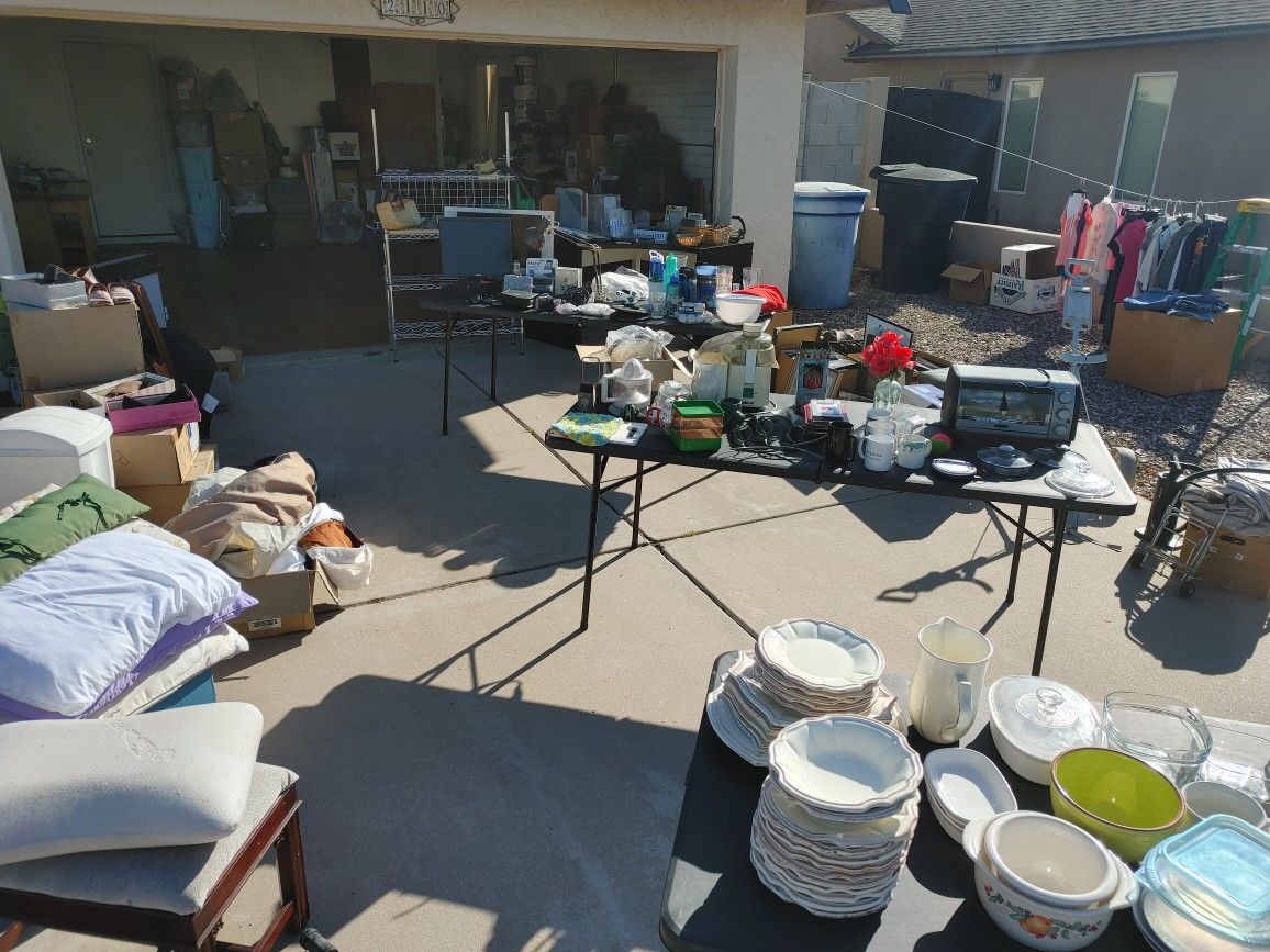 MOVING SALE - All REASONABLE OFFERS ACCEPTED DOBSON AND ELLIOT - CROSS STREETS READ AD- SEE ALL PHOTOS - LOTS OF STUFF Chlorine buckets 99.7 % Super Concentrate - tri chlor Chlorine (NO FILLERS) 50 and 55lb buckets 1 BUCKET OF SHOCK LEFT - 25 LB CONCENTRATED SHOCK Cash only. No zelle or vemo. Plus about 200 other things from a moving sale Weight bench Olympic Full weight set with full cable system and all weights Toys and clothes for toddlers and babies Black recliner swivel chair and rocking stool Alpine car CD player ***Over $1500 worth of Baby clothes and shoes and jackets and bags and pumps and maternity clothes, 0-3 months, 6 months, 9 months, 12 months, 18 months, 2 year, and 3 year ( Boys, Girls, baby, infant, toddler, kids) Surround home stereo speakers Wooden western bar on wheels, solid glossy wood Computer with monitor keyboard mouse 2 different juicers- Both new- Champion juicer and Juiceman Juicer and more Please see all photos- write about what you want for price and availability. Thx