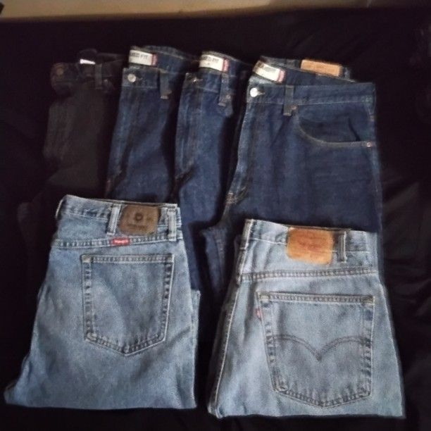 3 dark jeans Levi's Jean's in very good condition, one black pair in very good condition, 2 light jean jeans in good condition Size 38 32