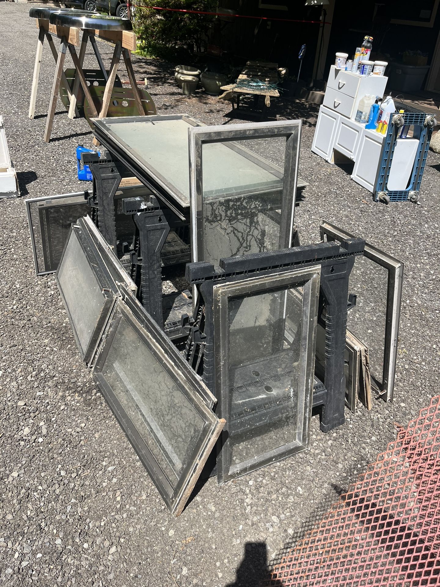 Various sizes old fashion windows, screens available. Solid structure, great for sheds, play houses, tree houses, cold frames and much more. 16 total. Price is for all of them.