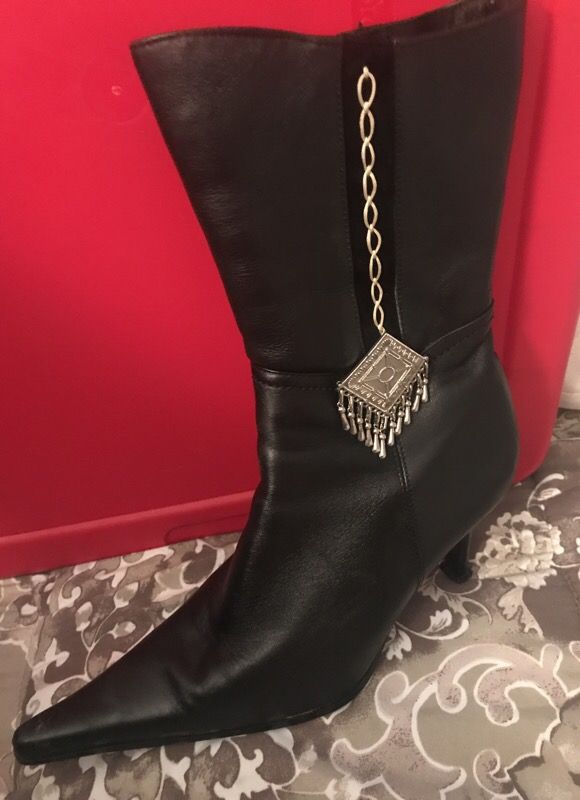 Black boots -gently used - perfect for the sassy fashionista ! Label "Gold-Flyer"