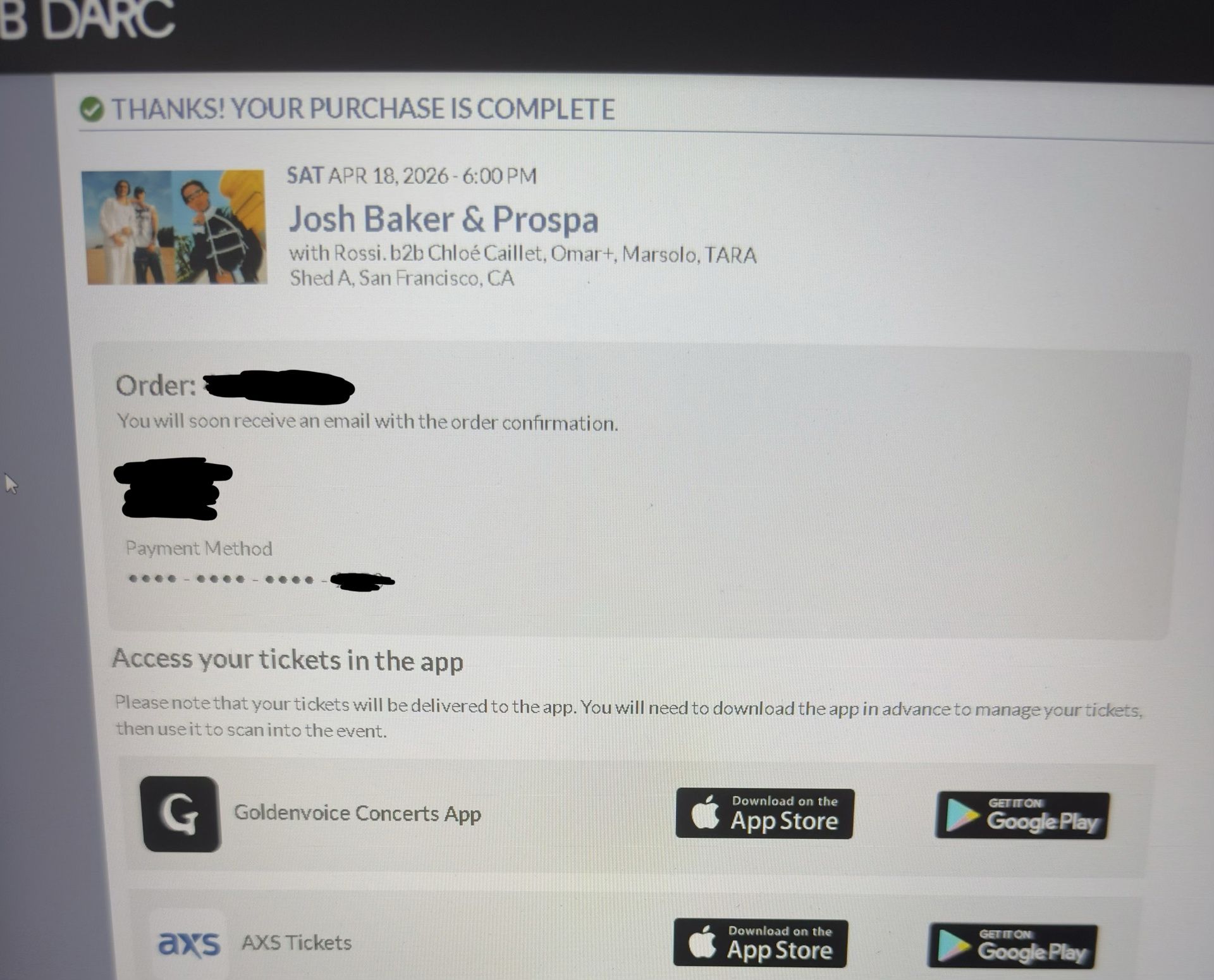2 Tickets PROSPA B2B JOSH BAKER w/ More Read Desc. $200