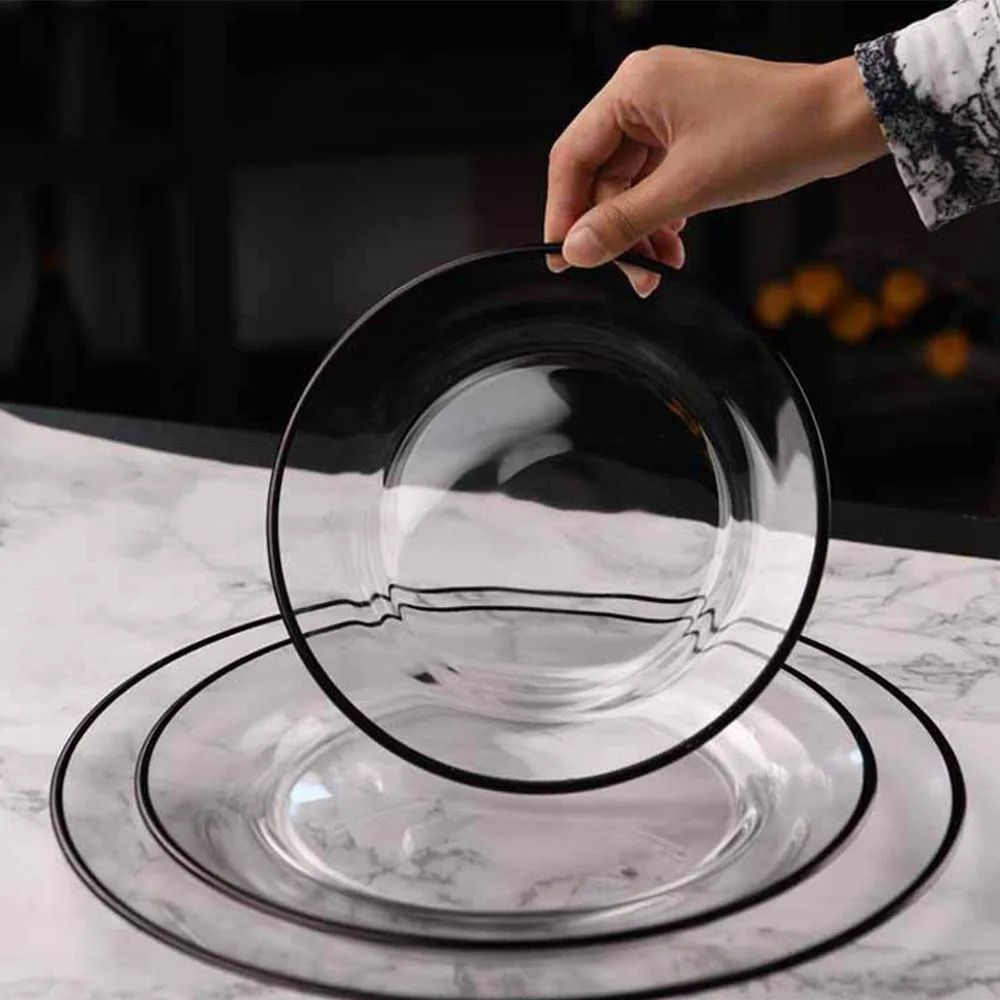 Dishes Set Black Trim Dinner Dessert Charger Plate Round Clear Glass Charger Plates with black rim