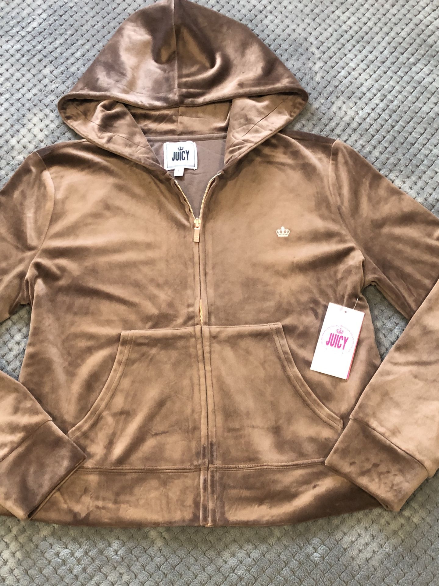 Brand new Juicy couture zip up super cute picture does not do justice its more like a like brown the coat color is called Burnett Womens size Large