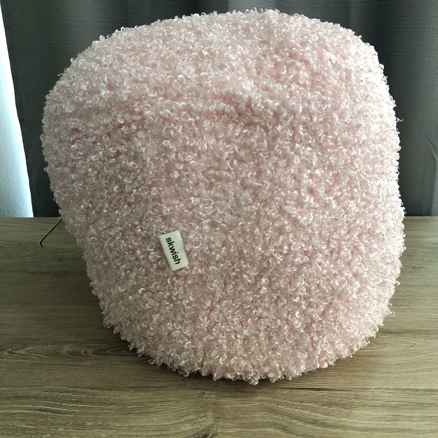 Pastel pink pouf pillow, gently used. Approximately 10” diameter, 11” high
