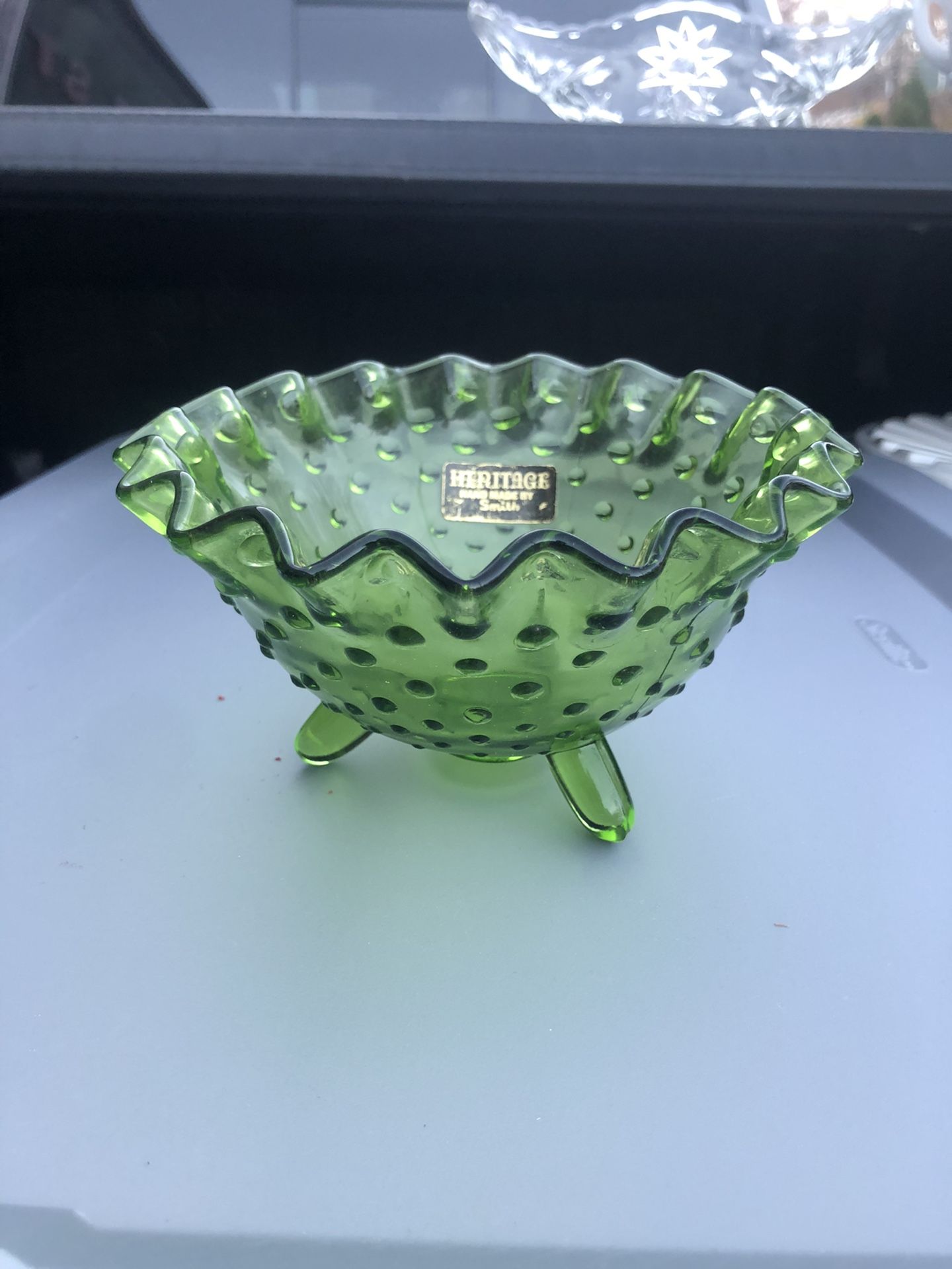 Vintage Heritage handmade LE Smith Glass Hobnail bowl/ Vase, 3 toed