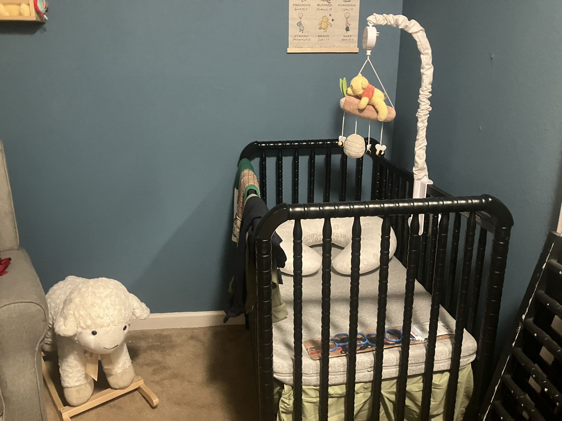 Used crib . New mattress in the box. Hight adjustable.