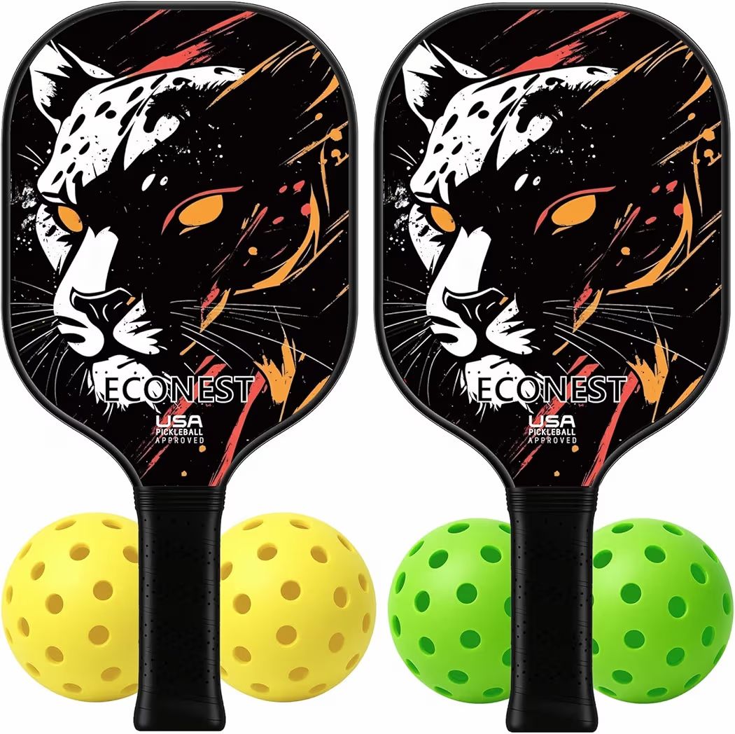 Pickleball Paddles Set of 2 with 4 Balls – High-Performance Fiberglass Face for Precision, Comfortable Grip & Easy Control – Ideal for Beginners & Intermediates – USAPA Approved