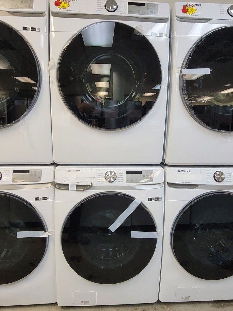 New Samsung Front Loading Washer And Stackable Gas Dryer Set With Steam